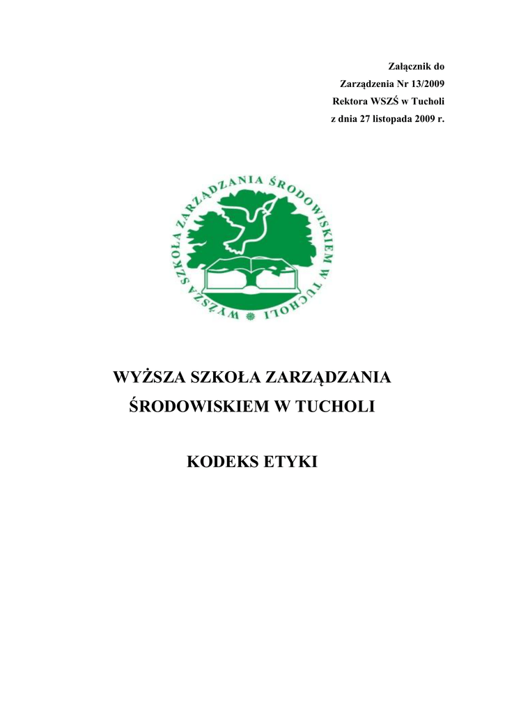 Kodeks etyki - Wyższa Szkoła Zarządzania Środowiskiem w Tucholi