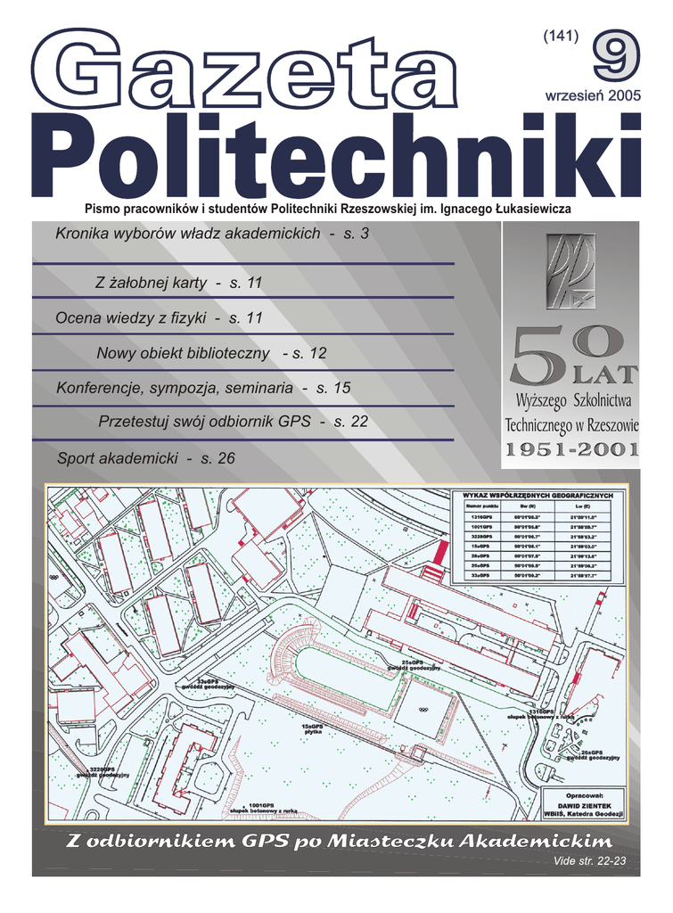 (141) 9 wrzesieñ 2005 Pismo pracowników i studentów Politechniki Rzeszowskiej im. Ignacego £ukasiewicza Kronika wyborów w³adz akademickich - s. 3 Z ¿a³obnej karty - s. 11 Ocena wiedzy z fizyki - s. 11 Nowy obiekt biblioteczny - s. 12 Konferencje, sympozja, seminaria - s. 15 Przetestuj swój odbiornik GPS - s. 22 Sport akademicki - s. 26 5 0 lat Wy¿szego Szkolnictwa Technicznego w Rzeszowie 1951-2001 2 GAZETA POLITECHNIKI Nr 9(141)–WRZESIEÑ 2005 3 Kronika wyborów W chwili, gdy czytaj¹ Pañstwo ten specjalny numer "Gazety Politechniki", nowo wybrane w³adze uczelni sprawuj¹ ju¿ swój mandat. Wybory na kadencjê 2005-2008 odby³y siê po raz ostatni na podstawie ustawy o szkolnictwie wy¿szym, obowi¹zuj¹cej od ponad dwudziestu lat. Nastêpne wybory bêd¹ zapewne nieco inaczej przebiegaæ. Teraz nadszed³ czas na podsumowanie ostatnich wyborów. Uczelniana Komisja Wyborcza (UKW), której mia³am zaszczyt przewodniczyæ, dzia³a³a w 16-osobowym sk³adzie. Pierwsze posiedzenie UKW, podczas którego wybrano przewodnicz¹cego, zastêpcê i sekretarza, odby³o siê 20 paŸdziernika 2004 r. Sk³ad UKW jest nastêpuj¹cy: = dr Krystyna CH£ÊDOWSKA - przewodnicz¹ca, = dr hab. in¿. £ukasz WÊSIERSKI, prof. PRz - zastêpca, = mgr Anna CIEŒLICKA - sekretarz, = dr hab. in¿. Les³aw GO£ÊBIOWSKI, prof. PRz, = prof. dr hab. in¿. Roman KADAJ, = mgr Henryk MEDER, = dr hab. in¿. Ireneusz OPALIÑSKI, prof. PRz, = dr Marta POMYKA£A, = Robert PRUS, = dr in¿. Janusz PUSZ, = dr in¿. Jan RODZIÑSKI, = Piotr SACHAJKO, = dr in¿. Aleksander STARAKIEWICZ, = dr hab. in¿. Miros³aw ŒMIESZEK, prof. PRz, = mgr Alicja ŒWIADEK, = dr Stanis³aw WIECZOREK. Pierwsze robocze posiedzenie UKW odby³o siê 3 listopada 2004 r. Opracowano na nim regulamin i tryb przeprowadzania wyborów w³adz akademickich w Politechnice Rzeszowskiej na kadencjê 2005-2008 oraz harmonogram wyborów. Utworzono równie¿ pozawydzia³owe okrêgi wyborcze (jednostki miêdzywydzia³owe, administracja i obs³uga, OKL) oraz powo³ano komisje wyborcze w tych okrêgach. Senat Politechniki Rzeszowskiej w dniu 18 listopada 2004 r. zatwierdzi³ wszystkie dokumenty przygotowane przez UKW. 8 grudnia odby³o siê zebranie okrêgowych komisji wyborczych, na którym cz³onkowie komisji wybrali swoich przewodnicz¹cych i zastêpców. W tym samym dniu UKW spotka³a siê z przewodnicz¹cymi wydzia³owych i okrêgowych komisji wyborczych. Uczestnicy zebrania zostali poinformowani o trybie przeprowadzania wyborów i harmonogramie. Pierwszym zadaniem komisji wyborczych by³ wybór, do 31 stycznia 2005 r., cz³onków Uczelnianego Kolegium Elektorów (UKE). Zadaniem tego gremium by³ wybór rektora i prorektorów uczelni. W dniu 10 lutego 2005 r. odby³o siê zebranie cz³onków UKE, na którym dokonano wyboru przewodnicz¹cego, zastêpcy, sekretarza. Pe³nienie tych funkcji powierzono nastêpuj¹cym osobom: = dr. hab. in¿. Markowi Gotfrydowi, prof. PRz - funkcjê przewodnicz¹cego, = dr. hab. in¿. Szczepanowi Woliñskiemu, prof. PRz - zastêpcy przewodnicz¹cego, = dr. in¿. Grzegorzowi Bajorkowi - sekretarza. Wybrano równie¿ komisjê skrutacyjn¹ w sk³adzie: = dr hab. Jaros³aw Górnicki, prof. PRz przewodnicz¹cy, = dr in¿. Jan Zacharzewski, = Krzysztof Wa¿ny. Zadaniem Komisji Skrutacyjnej by³o przygotowywanie kart do g³osowania, obliczanie g³osów podczas wyborów rektora i prorektorów. W dniach od 24 stycznia do 4 lutego 2005 r. pracownicy uczelni i studenci mogli zg³aszaæ kandydatów na stanowisko rektora Politechniki Rzeszowskiej. Zg³oszono na to stanowisko 12 kandydatów. Zgodê na kandydowanie wyrazili: u prof. dr hab. in¿. Marek Orkisz, u dr hab. in¿. Andrzej Sobkowiak, prof. PRz, u prof. dr hab. in¿. Leonard Ziemiañski. Lista kandydatów zosta³a podana do wiadomoœci wszystkich pracowników i studentów 10 lutego 2005 r. 28 lutego przewodnicz¹cy UKE dr hab. in¿. Marek Gotfryd zorganizowa³ otwarte spotkanie z kandydatami na stanowisko rektora. Na pocz¹tek zaprezentowali siê sami kandydaci. PóŸniej odpowiadali na pytania uczestników spotkania zadane wprost z sali lub pisemnie. Dzieñ 3 marca by³ jednym z najwa¿niejszych dni roku 2005 dla Politechniki Rzeszowskiej. Odby³y siê wybory rektora. Wiêkszoœci¹ g³osów w I turze g³osowania wybrano na to stanowisko dr. hab. in¿. Andrzeja Sobkowiaka, prof. PRz. Rektor elekt zg³osi³ na stanowiska prorektorów nastêpuj¹cych kandydatów: u prof. dr. hab. in¿. Tadeusza Markowskiego - na prorektora ds. ogólnych, u dr. hab. in¿. Aleksandra Koz³owskiego, prof. PRz - na prorektora ds. wspó³pracy miêdzynarodowej i regionalnej, u dr hab. in¿. Jacka Kluskê, prof. PRz na prorektora ds. nauki, u prof. dr. hab. in¿. Leszka WoŸniaka na prorektora ds. nauczania. 15 marca odby³o siê spotkanie kandydatów z pracownikami i studentami uczelni, a dwa dni póŸniej - 17 marca nast¹pi³y wybory prorektorów. Wiêkszoœci¹ g³osów UKE popar³o kandydatury zaproponowane przez rektora elekta. Nastêpnym etapem by³y wybory w³adz wydzia³owych - dziekanów, prodziekanów oraz cz³onków Senatu Politechniki Rzeszowskiej i cz³onków Rad Wydzia³ów. Wybory te dokona³y siê w wiêkszoœci wydzia³ów do 30 maja 2005 r. Na Wydziale Chemicznym termin wyborów przed³u¿ono z powodu niedokonania wyboru jednego z prodziekanów w I turze g³osowania i koniecznoœci zg³oszenia innej kandydatury. Sk³ad Senatu oraz Rad Wydzia³ów jest zamieszczony na str. 4-8. 4 GAZETA POLITECHNIKI Ostatnim aktem wyborczym by³ wybór, w dniu 9 czerwca 2005 r., elektorów Rady G³ównej Szkolnictwa Wy¿szego. Zostali nimi: u prof. dr hab. in¿. Marek Orkisz, u prof. dr hab. El¿bieta Wa³ajtys-Rode, u dr in¿. Bogus³aw Do³êga, u dr in¿. Jakub Wojturski, u dr Beata Zatwarnicka-Madura. Elektorzy z uczelni technicznych wybior¹ 24 listopada cz³onków Rady G³ównej: 4 przedstawicieli profesorów lub doktorów habilitowanych oraz 2 doktorów. Podsumowuj¹c ca³oœæ wyborów przepr