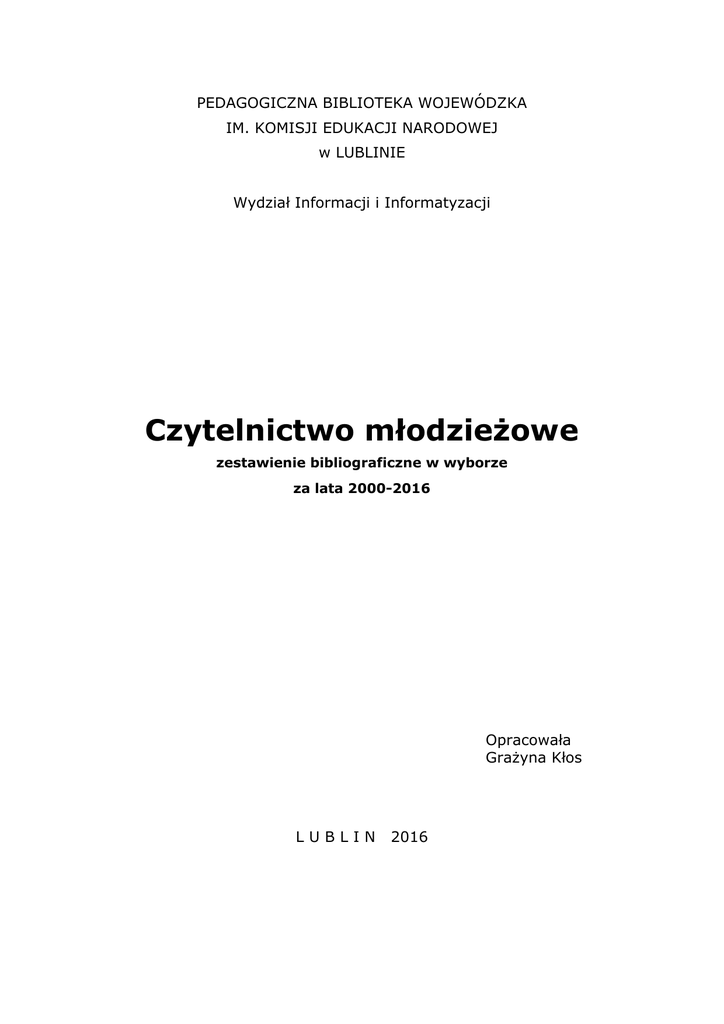 Czytelnictwo młodzieżowe - Pedagogiczna Biblioteka Wojewódzka