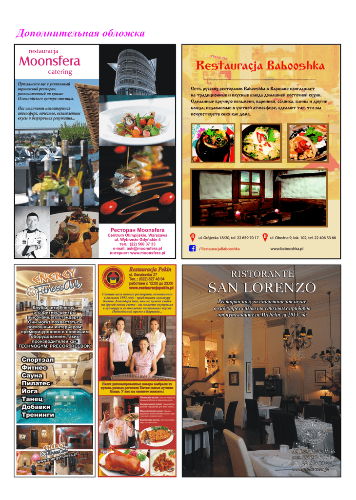 Дополнительная обложка в Посольстве РФ День России - наши самые свежие новости на 23 год в Польше WWW.WARSAW.RU Международная независимая газета 2014/7-8(248) ISSN 0867-7840 Index 374741, cena 2,50 zł. w tym VAT 8% Издается в Варшаве с 3 декабря 1991 Новый закон об иностранцах На вопросы нашего корреспондента отвечает Адам Пенкуль, основатель и глава консалтинговой компании "Adkins Adam Pękul", действующий в области обслуживания иностранцев и коммерческих предприятий на польском рынке Послабления... А вы уверены? 4-5 РЕСТОРАНЫ ВАРШАВЫ Знакомство с Москвой 3 ЮРИДИЧЕСКИЙ 4 2014/7-8(248) ЗАКОНЫ Мечты студента по Фрейду... EUROAZIA Euroazjatycka Unia Gospodarcza pozytywnie wpływa na gospodarkę Wzrost gospodarczy. Zwiększenie konkurencyjności. W ten sposób eksperci oceniają utworzenie Euroazjatyckiej Unii Gospodarczej. Dla Rosji, Białorusi i Kazachstanu pojawiły się nowe perspektywy. krajowe, a także wykorzystać potencjał, który znajduje się w powołanej grupie gospodarczej. To z kolei pobudza inwestycje. Eksperci zwracają uwagę na to, że dzięki Euroazjatyckiej Unii Gospodarczej Rosja, Białoruś i Kazachstan rozwijają połączenia transportowe. W szczególności Kazach- На вопросы корреспондента "Русского Курьера Варшавы" отвечает Адам Пенкуль, основатель и глава консалтинговой компании "Adkins Adam Pękul", действующий в области обслуживания иностранцев и коммерческих предприятий на польском рынке с 1997 года. Сайт фирмы: www.adkins.pl Новый закон об Послабления... С 1 мая в Польше вступил в силу новый закон об иностранцах, который, как предполагалось, был призван максимально упростить существующие процедуры, уменьшить бюрократию и побудить иностранцев массово легализовать свое пребывание в стране. Но стало ли, действительно, лучше? Итак, наши вопросы специалисту:. Co najmniej nowe miejsca pracy i wzrost wpływów budżetowych z podatków w każdym z tych państw. Według ekspertów, największy wpływ Euroazjatyckiej Unii Gospodarczej jako pierwsza odczuje Białoruś. Potem Kazachstan i Rosja. Mówiąc o Ukrainie jako o potencjalnym uczestniku Euroazjatyckiej Unii Gospodarczej, eksperci podkreślają, że straty z tytułu rezygnacji Kijowa z przyłączenia się do sojuszu mogą wynosić łącznie 150 miliardów dolarów w ciągu najbliższych 15 lat. Jest to prawie roczne PKB tego kraju. O perspektywach dla Rosji, Białorusi i Kazachstanu mówi szef Centrum Studiów Postsowieckich Instytutu Ekonomii Rosyjskiej Akademii Nauk Leonid Wardomskij: Sam fakt podpisania takiej umowy oznacza wiarę w przyszłość. Przed Rosją cały szereg interesujących możliwości. Euroazjatycka Unia Gospodarcza graniczy z szybko rozwijającymi się państwami Azji Środkowej. Kazachstan otrzymał znakomitą możliwość. Jeśli Kazachstan szybko się rozwija, to ma to korzystny wpływ na rosyjską gospodarkę. Białoruś ma bliskie kontakty z Ukrainą. Nawet jeśli pomiędzy Moskwą a Kijowem występują pewne problemy, to możemy rozwijać współpracę z Ukrainą za pośrednictwem Białorusi. Mówiąc o korzyściach dla Rosji, z wyliczeń ekspertów wynika, że w rezultacie stworzenia Euroazjatyckiej Unii Gospodarczej Moskwa zarobi 700 miliardów dolar w ciągu najbliższych 15 lat. Ponadto Euroazjatycka Unia Gospodarcza to również 0,03% rosyjskiego PKB rocznie. Ważne jest teraz, aby dostosowywać instytucje finansowe sojuszników, przepisy stan, który dzięki Rosji otrzymał dostęp drogą morską do rynków afrykańskich, europejskich i amerykańskich. Białoruś natomiast, wykorzystując rosyjski system transportowy, będzie mogła ściślej współpracować z Kazachstanem. Pomijając fakt, że Ukraina nie wstąpiła jeszcze do Euroazjatyckiej Unii Gospodarczej, jest mało prawdopodobne, aby całkowicie zerwała stosunki gospodarcze z państwami członkowskimi unii, mówi profesor Państwowego Uniwersytetu Badań Naukowych Rosji Wyższej Szkoły Gospodarki Aleksiej Portanskij: Jest mało prawdopodobne, że uda się obecnie nawiązać skuteczną współpracę Ukrainy z Rosją i Euroazjatycką Unią Gospodarczą. Chociaż nie uważam, żeby było to niemożliwe. W planie gospodarczym i handlowym nie można doprowadzić do zerwania istniejących więzi z Ukrainą. Są to bliskie relacje, szczególnie w przemyśle lotniczym, chemicznym, hutnictwie, itd. Oczywiście, byłoby dobrze je zachować. Jednakże, jak do tej pory, liczymy tylko straty, które ukraińska gospodarka ponosi z powodu słynnych już wydarzeń. Jedną trzecią obrotów handlowych Ukrainy stanowił handel z Rosją. Obecnie, z każdym miesiącem znacząco się zmniejsza. Uderzy to boleśnie w ukraińską gospodarkę. Euroazjatycka Unia Gospodarcza dopiero co powstała, a jest już wielu, którzy chcieliby się do niej przyłączyć. Zwłaszcza, że drzwi są otwarte dla wszystkich chętnych. Już teraz Kirgistan przygotowuje się do wstąpienia do unii. Rozmowy w sprawie przystąpienia do sojuszu prowadzi również Azerbejdżan. - Как вы считаете, можно ли назвать дату введения новых процедур и