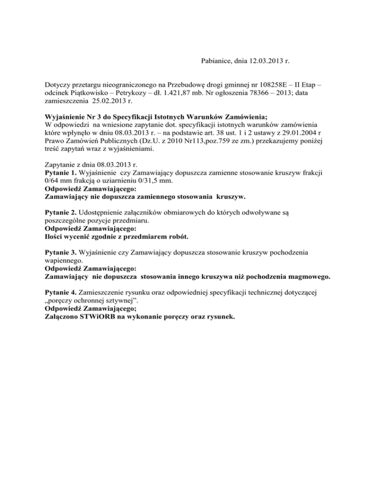 Pabianice, dnia 12.03.2013 r. Dotyczy przetargu nieograniczonego
