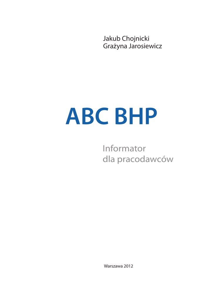 Jakub Chojnicki Grażyna Jarosiewicz ABC BHP Informator dla pracodawców Warszawa 2012 Projekt graficzny okładki Dorota Zając Opracowanie redakcyjne Monika Kolitowska-Sokół Opracowanie typograficzne i łamanie Jan Klimczak Copyright © Główny Inspektorat Pracy 2012 Wydanie IV Stan prawny październik 2012 r. W 4 (1275) PAŃSTWOWA INSPEKCJA PRACY GŁÓWNY INSPEKTORAT PRACY www.pip.gov.pl SPIS TREŚCI Rozdział I. Organy nadzoru nad warunkami pracy. Kontrola PIP Rozdział II. Odpowiedzialność i podstawowe obowiązki 5 pracodawcy w zakresie bhp 8 Rozdział III. Obowiązki i prawa pracownika w zakresie bhp 12 Rozdział IV. Obiekty budowlane i pomieszczenia pracy 15 Rozdział V. Pomieszczenia higieniczno-sanitarne 22 Rozdział VI. Profilaktyczna ochrona zdrowia pracowników. Rozdział VII. Badania lekarskie 26 Odzież i obuwie robocze. Środki higieny osobistej 30 Rozdział VIII. Środki ochrony indywidualnej 33 Rozdział IX. Napoje i posiłki profilaktyczne 37 Rozdział X. Szkolenia w dziedzinie bhp 40 Rozdział XI. Czynniki szkodliwe i uciążliwe w środowisku pracy. Badania i pomiary czynników szkodliwych Rozdział XII. 45 Czynniki stwarzające szczególne zagrożenie dla zdrowia i życia 55 Rozdział XIII. Prace szczególnie niebezpieczne 59 Rozdział XIV. Maszyny i inne urządzenia techniczne 62 Rozdział XV. Wypadki przy pracy 68 Rozdział XVI. Choroby zawodowe 74 Rozdział XVII. Ochrona pracy kobiet 76 Rozdział XVIII. Ochrona pracy młodocianych 77 Rozdział XIX. Ocena ryzyka zawodowego 78 Rozdział XX. 86 Służba bezpieczeństwa i higieny pracy Rozdział XXI. Wykroczenia przeciwko prawom pracownika dotyczące bhp 90 Rozdział XXII. Odpowiedzialność karna za naruszenie przepisów bhp 92 Rozdział XXIII. Podstawy prawne 93 Zapewnienie bezpieczeństwa i higieny pracy jest obowiązkiem prawnym i społecznym każdego pracodawcy, a także przedsiębiorcy, niebędącego pracodawcą, na rzecz którego jest świadczona praca przez osoby fizyczne, w tym wykonujące na własny rachunek działalność gospodarczą bez względu na podstawę świadczenia tej pracy, zatrudniającego ludzi na podstawie umów cywilno-prawnych. Pracodawcy i przedsiębiorcy, którzy świadomie inwestują w bhp w swojej firmie wiedzą, że w ten sposób nie tylko zapobiegają wypadkom i chorobom spowodowanym pracą, ale również budują pozytywny wizerunek swojej firmy, stanowiący zasadniczy element jej sukcesów. Pracodawco, przedsiębiorco pamiętaj! Tworzenie bezpiecznych warunków pracy oraz motywowanie ludzi do bezpiecznego postępowania to nie tylko wywiązywanie się z obowiązku nałożonego przez prawo na pracodawcę, ale także inwestycja, która się opłaca. ROZDZIAŁ I. ORGANY NADZORU NAD WARUNKAMI PRACY. KONTROLA PIP Organem powołanym do sprawowania nadzoru i kontroli przestrzegania prawa pracy, w szczególności przepisów bezpieczeństwa i higieny pracy, a także przepisów dotyczących legalności zatrudnienia i innej pracy zarobkowej jest Państwowa Inspekcja Pracy. Działa ona na podstawie ustawy o Państwowej Inspekcji Pracy z dnia 13 kwietnia 2007 r. [1]. Państwowa Inspekcja Pracy podlega Sejmowi. Pozostałe organy nadzoru podlegają poszczególnym ministrom. Są to: Wyższy Urząd Górniczy, Urząd Dozoru Technicznego, Urzędy Nadzoru Budowlanego, Inspekcja Sanitarna i inne, ukierunkowane na szczególne rodzaje działalności (np. Inspekcja Drogowa). Jakie podmioty podlegają kontroli PIP? Kontroli Państwowej Inspekcji Pracy podlegają: 1. pracodawcy – a w zakresie bezpieczeństwa i higieny pracy oraz kontroli legalności zatrudnienia także niebędący pracodawcami przedsiębiorcy i inne jednostki organizacyjne – na rzecz których jest świadczona praca przez osoby fizyczne, w tym przez osoby wykonujące na własny rachunek działalność gospodarczą, bez względu na podstawę świadczenia tej pracy; 2. podmioty świadczące usługi pośrednictwa pracy, doradztwa personalnego, poradnictwa zawodowego oraz pracy tymczasowej w rozumieniu zapisów ustawy z dnia 20 kwietnia 2004 r. o promocji zatrudnienia i instytucjach rynku pracy; 3. podmioty kierujące osoby w celu nabywania umiejętności praktycznych, w szczególności odbycia praktyki absolwenckiej, praktyki lub stażu zawodowego, niebędących zatrudnieniem lub inną pracą zarobkową – w zakresie przewidzianym ustawą z dnia 20 kwietnia 2004 r. o promocji zatrudnienia i instytucjach rynku pracy. Od czego inspektor pracy rozpoczyna kontrolę u pracodawcy/przedsiębiorcy? Zgodnie z ustawą o PIP inspektor pracy ma prawo przeprowadzenia kontroli o każdej porze dnia i nocy, bez uprzedzenia. Inspektor pracy rozpoczyna czynności kontrolne od okazania pracodawcy/przedsiębiorcy lub osobie upoważnionej do jego reprezentowania legitymacji służbowej oraz imiennego upoważnienia do przeprowadzenia kontroli. Kontrolę prowadzi inspektor wskazany w upoważnieniu. Jeśli będzie ją kontynuował inny inspektor, on także musi pokazać odrębne upoważnienie. Możliwe jest też przeprowadzenie kontroli tylko na podstawie legitymacji służbowej. Dzieje się to w sytuacji, gdy trzeba ją przeprowadzić niezwłocznie (np. istnieje zagrożenie życia lub zdrowia pracowników, którzy pracują na wysokości bez zabezpieczeń przed upadkiem, w niezabezpieczonych wykopach itp.). W takich przypadkach inspektor 5 pracy także musi przedstawić upoważnienie, ale już po rozpoczęciu kontroli, nie później jednak, niż w terminie 7 dni od dnia podjęcia czynności kontrolnych. Co dla pracodawcy/przedsiębiorcy oznacza w praktyce ustawowy obowiązek współdziałania z inspekcją pracy w trakcie prowadzonej przez nią kontroli? Obowiązki pracodawcy/przedsiębiorcy w trakcie kontroli polegają przede wszystkim na umożliwieniu inspektorowi dostępu do wszystkich pomieszczeń pracy, wglądu w dokumenty, zapewnieniu terminowego udzielania niezbędnych informacji od pracowników i innych pracujących na terenie zakładu osób itp. Inspektoro