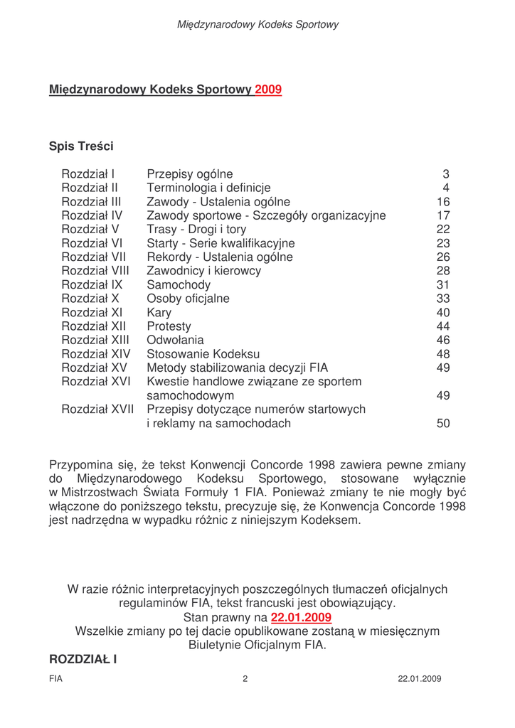 Międzynarodowy Kodeks Sportowy 2009 (*)