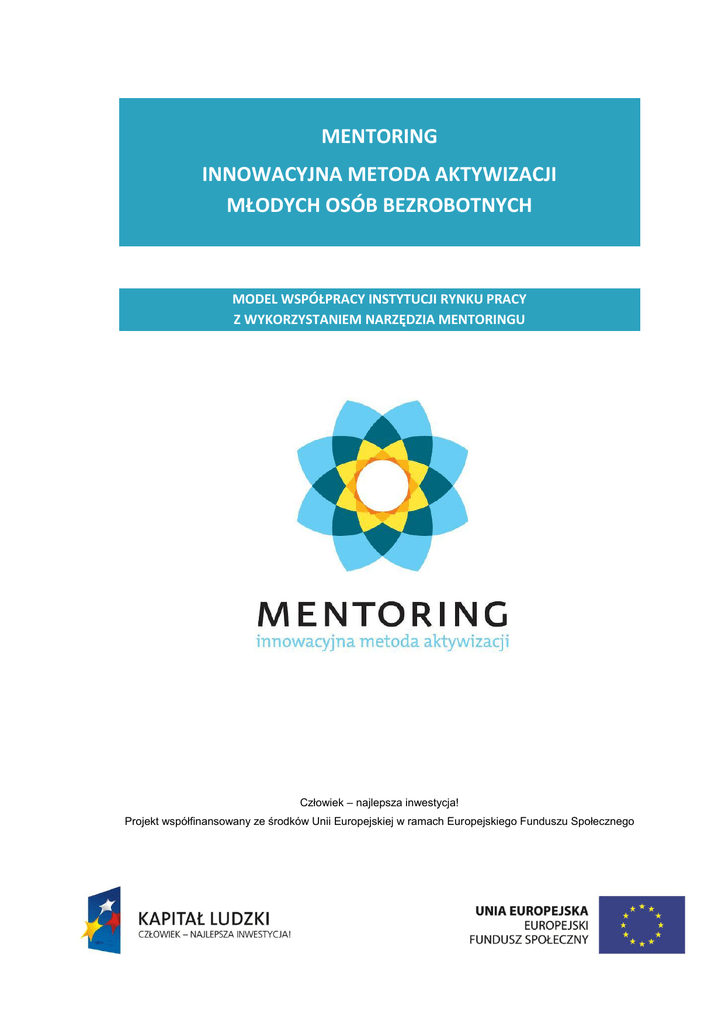 MENTORING INNOWACYJNA METODA AKTYWIZACJI MŁODYCH OSÓB BEZROBOTNYCH MODEL WSPÓŁPRACY INSTYTUCJI RYNKU PRACY Z WYKORZYSTANIEM NARZĘDZIA MENTORINGU Człowiek – najlepsza inwestycja! Projekt współfinansowany ze środków Unii Europejskiej w ramach Europejskiego Funduszu Społecznego 1 Szanowni Państwo, Niniejszy podręcznik powstał z myślą o współpracy instytucji rynku pracy, zwłaszcza Publicznych Służb Zatrudnienia z organizacjami pozarządowymi, z wykorzystaniem innowacyjnego narzędzia mentoringu. Model został wypracowany w ramach projektu współfinasowanego ze środków Unii Europejskiej przy pełnym zaangażowaniu wszystkich partnerów. Celem podręcznika jest przedstawienie wypracowanych rozwiązań w zakresie aktywizacji osób bezrobotnych do 25 roku życia, a także narzędzia, które uzupełniałoby dotychczasową ofertę instytucji rynku pracy o wsparcie wysoko zindywidualizowane. Mentoring to forma wspierania ludzi w trudnych dla nich sytuacjach życiowych. Bazuje na partnerskiej relacji mentora z podopiecznym, umożliwiającej odkrywanie i rozwój potencjału osoby mentorowanej. Polega głównie na tym, by podopieczny/-a rozwijał samoświadomość, a poznając siebie, nie obawiał/-a się zarządzać życiem, planować własną przyszłość. Zadaniem mentora jest inspirowanie, motywowanie i ukierunkowanie działania na określony cel, a także refleksja nad osiągniętymi rezultatami. Mentor jest pewnego rodzaju przewodnikiem, doradcą, konsultantem, wspierającym swojego podopiecznego w rozwoju kompetencji zarówno merytorycznych, jak i związanych z rozwojem osobistym. Dla nas sukces mentoringu zależał od czegoś więcej niż przekazania podopiecznemu mechanizmów rynku pracy. Oprócz konkretnych strategii czy sztuczek, które większość uważa za niezbędne, żeby osiągnąć sukces w życiu zawodowym, kariera powinna opierać się na wprowadzanych w życie pewnych wartościach. Dlatego tak istotne stało się, by mentorzy własnym postępowaniem pokazywali, jak ważne jest bycie szczerym, sumiennym i uczciwym w swoich działaniach. Mentorzy starali się więc dzielić swoją wiedzą i doświadczeniem poprzez budowanie relacji opartej na szacunku, zaufaniu i odpowiedzialności. Liczę, że podręcznik wskaże Państwu nowe możliwości pracy z młodymi osobami poszukującymi swojej drogi, nie tylko zawodowej. Magdalena Tokarska Prezes Fundacji na rzecz Collegium Polonicum Człowiek – najlepsza inwestycja! Projekt współfinansowany ze środków Unii Europejskiej w ramach Europejskiego Funduszu Społecznego SPIS TREŚCI I. WPROWADZENIE ...............................................................................................7 II. IDEA MENTORINGU .......................................................................................... 11 Definicja mentoringu....................................................................................................................... 11 Relacja mentoringowa .................................................................................................................... 16 Osoba mentora ............................................................................................................................... 21 Rola podopieczego w relacji mentoringowej ................................................................................... 24 Przykłady zastosowania mentoringu ............................................................................................... 25 III. PROGRAM MENTORINGU ................................................................................. 28 Przygotowanie programu mentoringu ............................................................................................. 28 Rekrutacja mentorów ..................................................................................................................... 39 Rekrutacja podopiecznych............................................................................................................... 43 Warsztaty wstępne ......................................................................................................................... 45 Matching – dobieranie w pary ......................................................................................................... 49 Relacja mentoringowa .................................................................................................................... 50 Warsztaty na zakończenie relacji mentoringowej ............................................................................ 58 Wsparcie uzupełniające ................................................................................................................... 59 Zasady monitorowania i ewaluacji .................................................................................................. 63 Doświadczenia z mentoringiem uczestników projektu .................................................................... 66 IV. WDROŻENIE NARZĘDZIA MENTORINGU ............................................................ 78 V. PRZYKŁADY PROGRAMÓW MENTORINGOWYCH DZIAŁAJĄCYCH W NIEMCZECH 85 VI. CZĘSTE PYTANIA (FAQ) ..................................................................................... 93 VII. ZAWARTOŚĆ PŁYTY CD ..................................................................................... 98 VIII. BIBLIOGRAFIA ................................................................................................ 100 IX. ZAŁĄCZNIKI .................................................................................................... 101 I. WPROWADZENIE Podręcznik powstał w ramach projektu „PI-PWP Mentoring – innowacyjna metoda aktywizacji” realizowanego jest przez Fundację na rzecz Collegium Polonicum w trójsektorowym partnerstwie z Organizacją Pracodawców Ziemi Lubuskiej, Przedsiębiorstwem Produkcyjno-Handlowym „Irmek” z Gorzowa Wielkopolskiego, Powiatowym Urzędem Pra