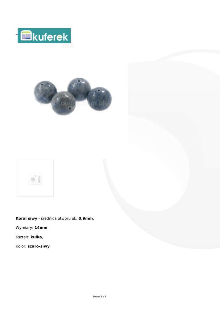 Koral siwy - średnica otworu ok. 0,9mm, Wymiary: 14mm, Kształt: kulka, Kolor: szaro-siwy. Strona 1 z 1