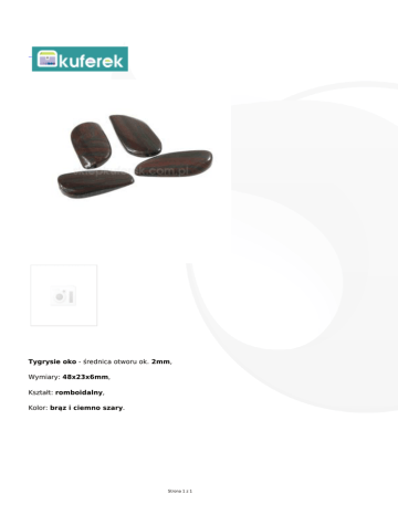 Tygrysie oko - średnica otworu ok. 2mm, Wymiary: 48x23x6mm, Kształt: romboidalny, Kolor: brąz i ciemno szary. Strona 1 z 1