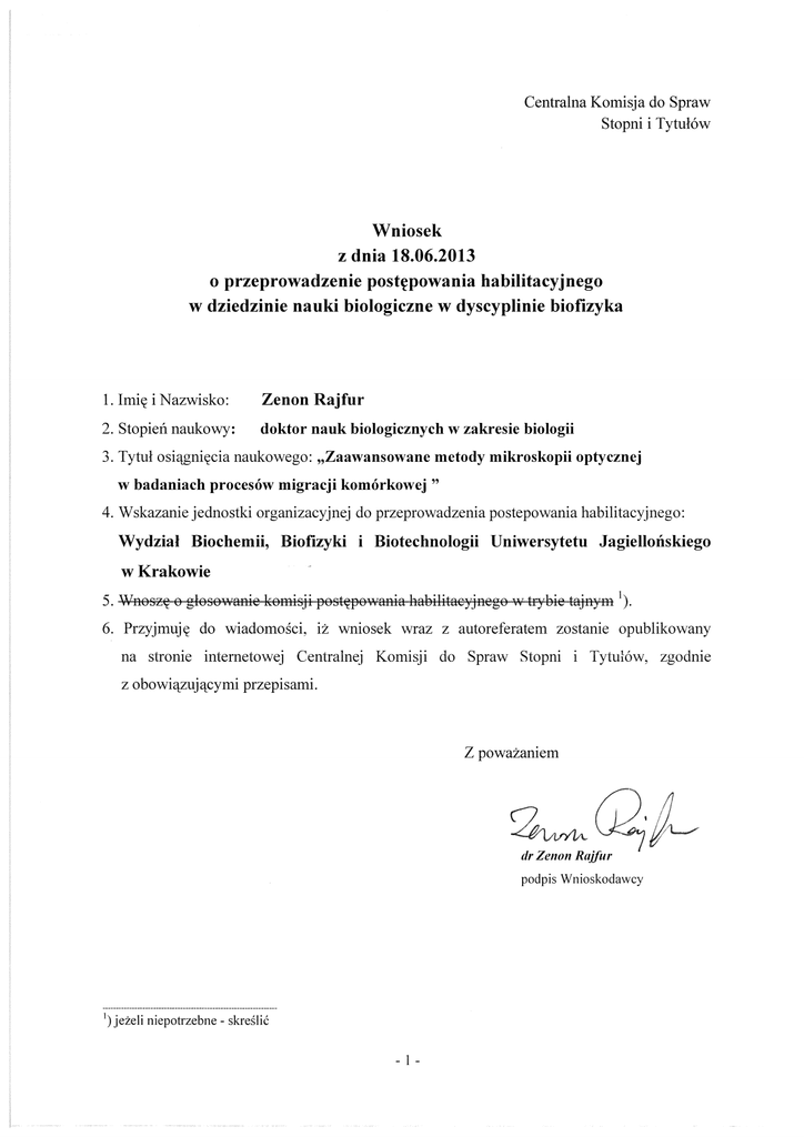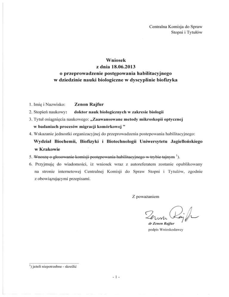 wniosek - Uniwersytet Jagielloński