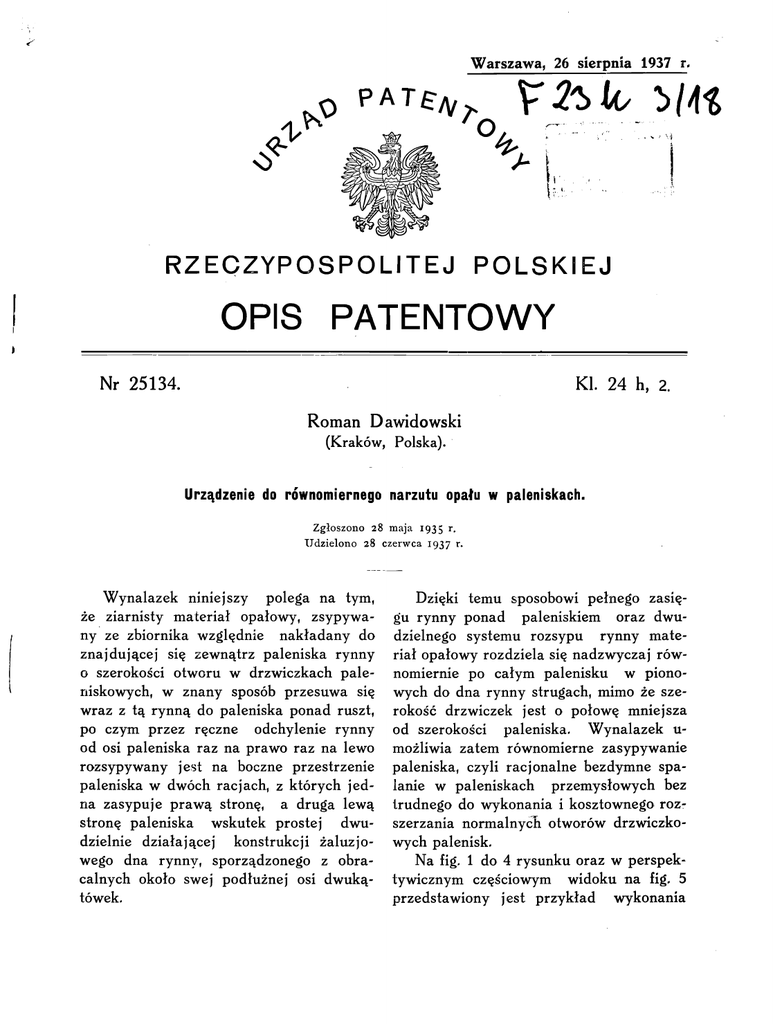 Urządzenie do równomiernego narzutu opału w paleniskach.