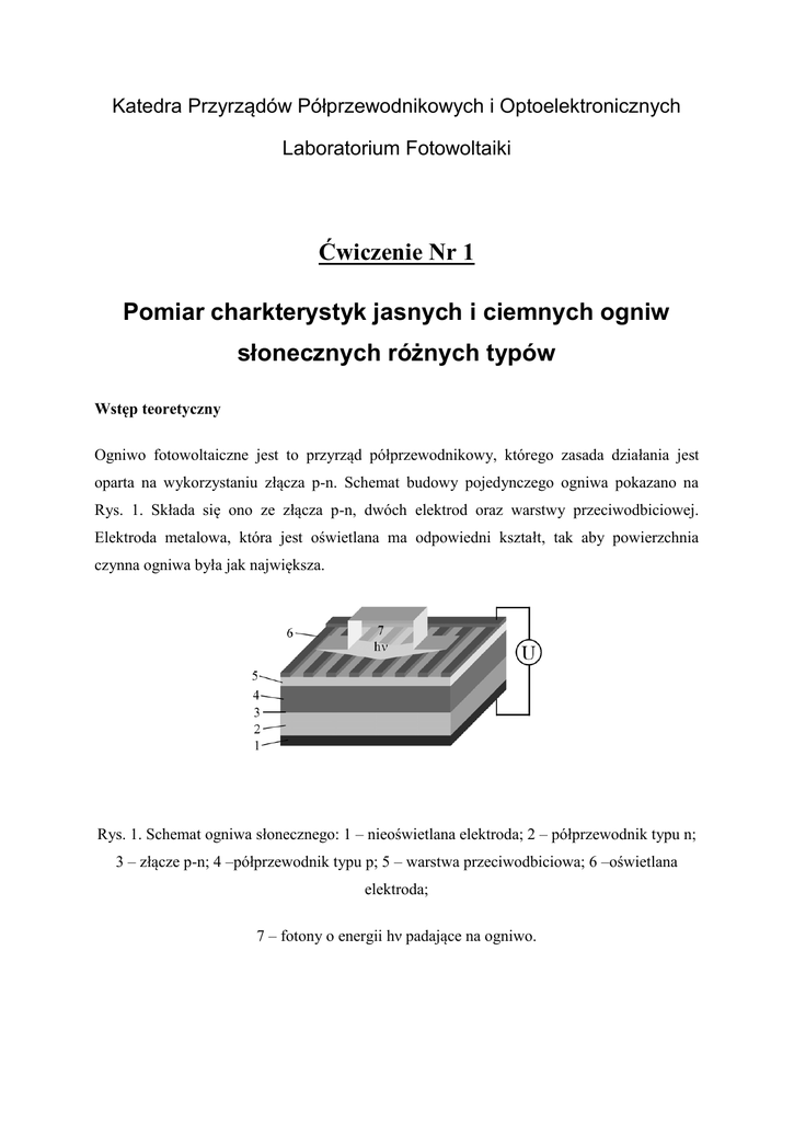 Ćwiczenie Nr 1 - Katedra Przyrządów Półprzewodnikowych i