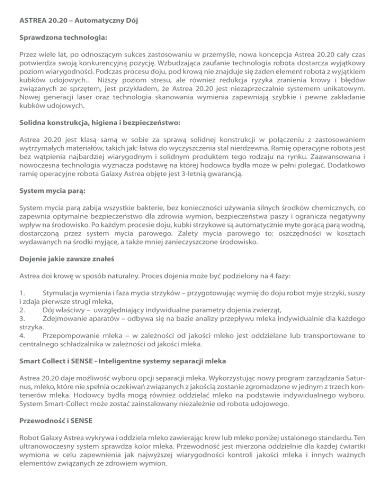 ASTREA 20.20 – Automatyczny Dój Sprawdzona technologia: Przez
