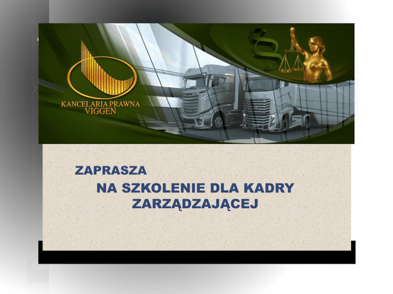 ZAPRASZA NA SZKOLENIE DLA KADRY ZARZĄDZAJĄCEJ Czy jesteś pewien, że nie masz ukrytych roszczeń kierowców? Sprawdź swoje ustawienia w dokumentach 9:45-11:00 – Przywitanie gości. Potyczki przedsiębiorców z kierowcami przed Sądami Pracy – Barbara Błach-Bujak (Kierownik Działu Procesowego Kancelarii Prawnej Viggen sp.j.) 11:00-12:15 – Czas pracy kierowców – Karolina Otfinowska (Kierownik Działu Silnik Prawny Kancelarii Prawnej Viggen sp.j.) 12:15-12:30 – PRZERWA KAWOWA 12:30-13:45 – Jak rozliczać wyjazdy służbowe i delegacje? - Magdalena Szaraniec-Kurzydym (Kierownik Działu Zleceń Zewnętrznych, Optymalizacji oraz Rozliczeń Wynagrodzeń Kierowców Kancelarii Prawnej Viggen sp.j.) 13:45-14:30 – PRZERWA OBIADOWA 14:30-16:30 - Loi Macron - wszystko, co musisz wiedzieć, aby bezpiecznie wjechać na teren Francji od 1 lipca – Mariusz Miąsko (Prezes Kancelarii Prawnej Viggen sp.j.) 16:30 – PODSUMOWANIE Mariusz Miąsko – Prezes Kancelarii Prawnej Viggen sp.j. O O O Absolwent Wydziału Uniwersytetu Śląskiego Prawa i Administracji Prezes Kancelarii Prawnej Viggen. Ekspert polskiego oraz europejskiego prawa transportowego. Wykonawca ponad 300 audytów naprawczych w firmach transportowych Autor i pomysłodawca produktów tj.: SILNIK PRAWNY/ dawniej LEXtrans24, Wirtualny Audytor, VTS Project, Koniczyka, Bus Manager +, Symulator rozporządzenia 561. Organizator oraz prelegent wielu konferencji transportowych Szkolenie z zakresu: - formalności jakie należy dopełnić, aby być bezpiecznym od kar administracyjnych związanych z ustawą Loi Macron, - sankcji karnych grożących za niedopilnowanie wymogów francuskich organów. Barbara Błach – Bujak – Prawnik Kancelarii Prawnej Viggen sp.j. O O Absolwentka Prawa na Wydziale Prawa i Administracji Krakowskiej Akademii im. Andrzeja Frycza Modrzewskiego Doktorantka na i Administracji Jagiellońskiego Wydziale Prawa Uniwersytetu Szkolenie z zakresu: - aktualna linia orzecznicza w Sądach Pracy, metody zabezpieczenia przed potencjalnymi postępowaniami sądowymi i występowaniem pracowników o roszczenia. Karolina Otfinowska – Prawnik Kancelarii Prawnej Viggen sp.j. O O Absolwentka Wydziału Prawa i Administracji Krakowskiej Akademii im. Andrzeja Frycza Modrzewskiego Specjalistka ewidencji czasu pracy kierowców i prawa pracy, uczestniczka Podkomisji Sejmowych w sprawie Ustawy o czasie pracy kierowców oraz Ustawy o transporcie drogowym Szkolenie z zakresu: - analizy danych z kart kierowców i tachografów, - precyzjnego rozlliczania czasu pracy kierowców z uwzględnieniem przerw, godzin nocnych itp., - prowadzenia ewidencji zgodnie z prawem obowiązującym w Polsce i innych krajach. Magdalena Szaraniec-Kurzydym – Prawnik Kancelarii Prawnej Viggen sp.j. ● ● Absolwentka Prawa na Wydziale Prawa i Administracji Uniwersytetu Jagiellońskiego Specjalizuje się w przygotowywaniu postępowania sądowo-administracyjnego oraz prowadzeniu postępowania administracyjnego m.in. przed ITD oraz PIP Szkolenia z zakresu: - naliczania dodatków dla pracowników, - rozliczania wyjazdów służbowych i delegacji. MIEJSCE SZKOLENIA: MODLNICA UL.CZĘSTOCHOWSKA 6 (2KM OD KRAKOWA) TERMIN SZKOLENIA: 14 CZERWCA CENA SZKOLENIA: 797 ZŁ ZAPRASZAMY KONTAKT 502 189 280 ZADZWOŃ, ZAPISZ SIĘ I WEŹ UDZIAŁ W TYM WYDARZENIU.