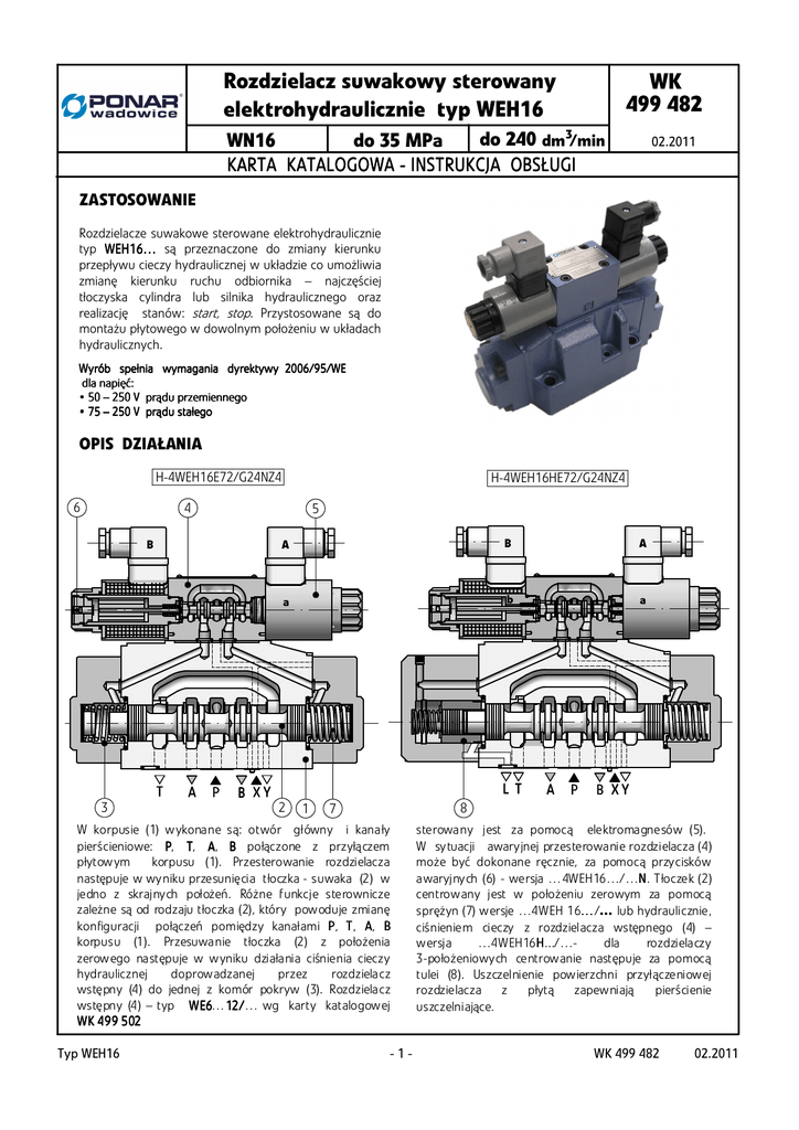 WK 499 482 Rozdzielacz suwakowy sterowany elektrohydraulicznie