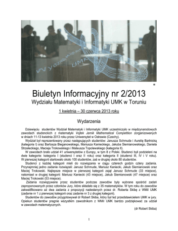 Biuletyn Informacyjny nr 2/2013 - Wydział Matematyki i Informatyki