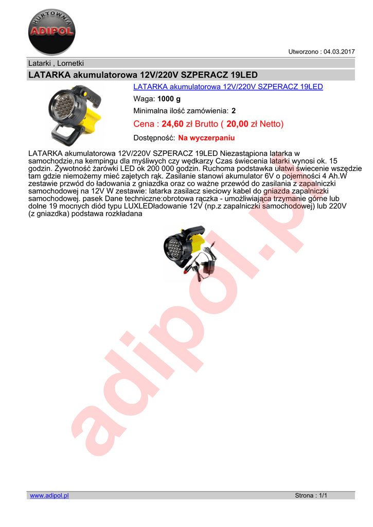 LATARKA akumulatorowa 12V/220V SZPERACZ 19LED