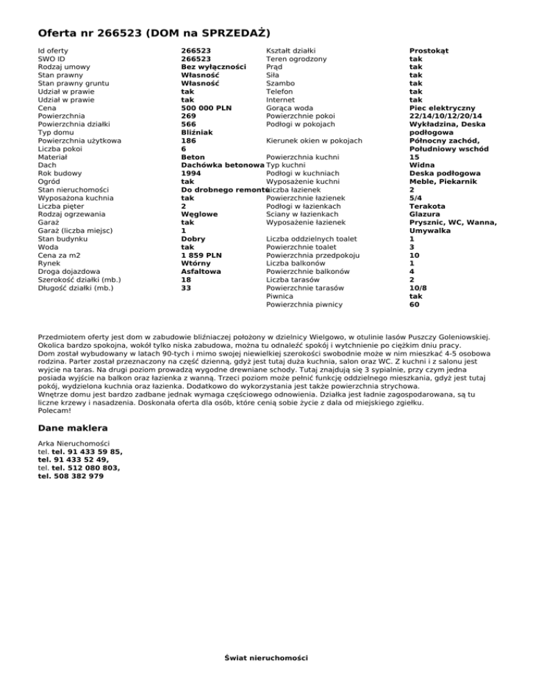 Oferta nr 266523 (DOM na SPRZEDAŻ)