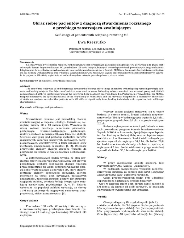 The aim of this study was to find differences between the features of self-image of patients with relapsing-remitting multiple scle77? %7'F*7+H/77!,/5$#