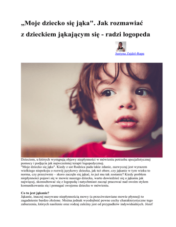„Moje dziecko się jąka". Jak rozmawiać z dzieckiem jąkającym się - radzi logopeda Justyna Zajdel-Rapa Dzieciom, u których występują objawy niepłynności w mówieniu potrzeba specjalistycznej pomocy i podjęcia jak najwcześniej terapii logopedycznej. "Moje dziecko się jąka". Kiedy z ust Rodzica pada takie zdanie, zazwyczaj jest wyrazem wielkiego niepokoju o rozwój językowy dziecka, jak też obaw, czy jąkanie w tym wieku to norma, czy przeciwnie – skoro zaczęło się jąkać, to już mu tak zostanie? Kiedy problem niepłynności pojawi się w mowie naszego dziecka, warto dowiedzieć się o jąkaniu jak najwięcej, skonsultować się z logopedą i natychmiast zacząć pracować nad swoim stylem komunikowania się i pomagać swojemu dziecku w mówieniu. Co to jest jąkanie? Jąkanie, inaczej nazywane niepłynnością mowy (a przeciwstawiane mowie płynnej) to zagadnienie bardzo złożone. Można jednak wyodrębnić pewne cechy charakterystyczne tego zaburzenia, których nasilenie oraz rodzaj zależny jest od przypadków indywidualnych. Józef Sheehan (jąkający się psycholog) bardzo trafnie zobrazował jąkanie na przykładzie „modelu góry lodowej”. Jej przeważająca część, która wystaje ponad wodą jest reprezentacją jawnych, zewnętrznych, widocznych, słyszalnych objawów jąkania, a mniejsza jej część, znajdująca się pod wodą to metafora objawów ukrytych jąkania, czyli psychicznych, wewnętrznych: uczuć i postaw. Do objawów jawnych zaliczymy wszystkie zaburzenia związane z oddychaniem, wydawaniem dźwięku oraz samym mówieniem. Najczęściej można obserwować: - powtarzanie słów, pojedynczych sylab, głosek - przeciąganie/przedłużanie samogłosek i spółgłosek - bloki mowy, gdy aparat artykulacyjny jest gotowy do wypowiedzi, ale dźwięk się nie pojawia, np. zespół przeciągnięć, pauzy napięte - napięcie mięśni twarzy, wokół szyi, warg, nosa, oczu - dodatkowe ruchy ciała (współruchy), np. tupanie nogami, stukanie palcami, kręcenie pupą itp. - kłopoty z oddechem, np. wstrzymywanie oddechu podczas wypowiedzi lub zbyt długi wdech Zdarza się jednak, że dziecko wypracuje pewne sposoby radzenia sobie z jąkaniem, które nie będą objawem dziecięcego sprytu, a raczej wypada myśleć o nich, jako ukrytych objawach jąkania – tych niewidocznych, płynących z głębi dziecięcego „ja”. Zaliczyć tu możemy: - unikanie mówienia pewnych słów (lub zamienianie ich), np. zaczynających się na określoną głoskę - unikanie niektórych sytuacji, wymagających zaangażowania słownego, co prowadzić może do izolowania się od świata Trzeba jednak być niezwykle czujnym, by te ukryte objawy jąkania u dziecka dostrzec. Jąkanie wczesnodziecięce a rozwojowa niepłynność mówienia Kiedy u dziecka zauważymy pierwsze objawy niepłynności, nie zawsze musi to oznaczać, że nasze dziecko wyrośnie na osobę jąkającą się. Badania naukowe, zarówno światowe, jak i polskie pokazują, że u około 60% dzieci od 2 aż do 6 r.ż., czyli w czasie, kiedy rozwój mowy przebiega najbardziej intensywnie pojawia się zwykła, tzw. rozwojowa niepłynność mówienia, która jest ściśle związana z nabywaniem kompetencji językowej i komunikacyjnej. Objawy zwykłej niepłynności rozwojowej przypominają objawy jąkania wczesnodziecięcego (powtarzanie części wyrazy, przeciąganie głosek, napięte pauzy, nierytmiczne wymawianie głosek, itp.), jednak wraz z coraz lepszym opanowywaniem umiejętności posługiwania się językiem przez dziecko, częstotliwość pojawiania się objawów niepłynności będzie się zmniejszać, aż do ich całkowitego zaniku do ukończenia przez dziecko 7 r.ż., bez specjalistycznej pomocy terapeutycznej. Jąkanie zaś wczesnodziecięce, mające swoje pierwsze objawy również między 2 a 4 r.ż. dziecka, charakteryzuje się nieprzewidywalnym i niestałym przebiegiem. Rozwija się zwykle stopniowo, ale może również pojawić się nagle, gwałtownie. Jego pojawienie się zależne jest też od wielu czynników, począwszy od pory dnia i sytuacji, w jakiej znajduje się dziecko, przez kontekst wypowiedzi (z kim i gdzie rozmawia), aż do samopoczucia dziecka w danej chwili. Momenty niepłynne współwystępują obok mowy płynnej, wzajemnie przenikają się, mogą trwać krótko, a mogą przedłużać się aż do kilku tygodni, a przyczyny takiej niestabilności w mowie trudno znaleźć. Dziecko, u którego obserwować będziemy jąkanie wczesnodziecięce będzie świadome swoich trudności, a przez to również może być negatywnie nastawione do mówienia w ogóle. Skąd bierze się jąkanie? Jak pisałam na początku, jąkanie to zjawisko niezwykle złożone, a przyczyny jego wystąpienia nie są łatwe do ustalenia. Podążając za badaczami, skłaniam się ku wieloczynnikowej koncepcji jąkania, według której, wystąpienie objawów niepłynności zależne jest od czterech grup czynników: fizjologicznych, psychologicznych, językowych oraz środowiskowych. Czynniki fizjologiczne i językowe. Badania wykazują, że jąkanie może mieć podłoże genetyczne, tzn. bardziej prawdopodobne jest pojawienie się objawów niepłynności u dziecka, w którego rodzinie problem jąkania już się pojawił. Większe prawdopodobieństwo wystąpienia zaburzeń płynności zauważa się również u dzieci z uszkodzeniem mózgu, zespołem Downa oraz urodzonych przedwcześnie. Częściej jąkanie pojawia się również u chłopców niż u dziewczynek Niepłynność może być też związane z różnicami w sprawnościach motorycznych narządów artykulacyjnych, które z kolei ściśle wiążą się z powstawaniem mowy. Badania sugerują również, że dzieci jąkające się mogą prezentować opóźniony rozwój mowy lub przeciwnie – nieprzeciętne zdolności językowe, albo też wykazywać dysproporcje w rozwoju funkcji językowych. Objawy jąkania mogą nasilać się podczas wypowiadania dłuższych, 