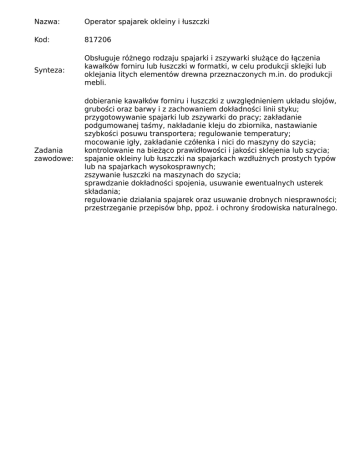 Nazwa: Operator spajarek okleiny i łuszczki Kod: 817206 Synteza