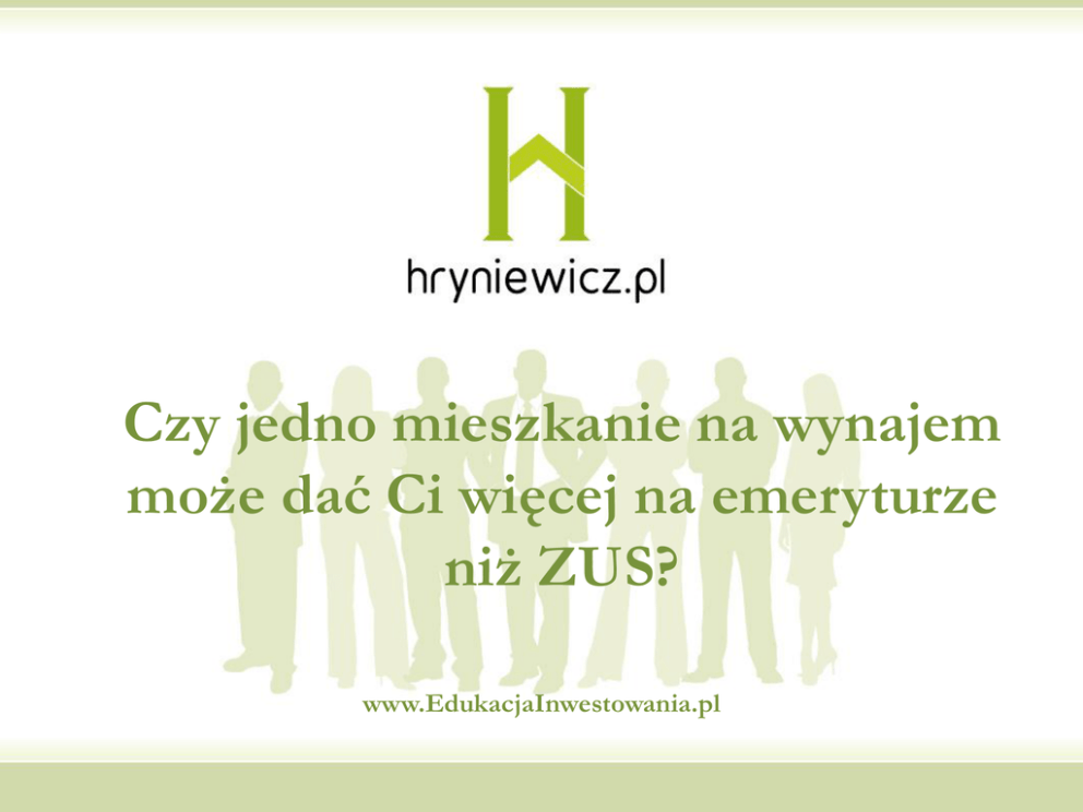 Czy jedno mieszkanie na wynajem może dać Ci więcej na emeryturze niż ZUS? www.EdukacjaInwestowania.pl Kupowanie nieruchomości na wynajem jest jedną z najlepszych dróg na budowanie swojej wolności finansowej. Grając w Cashflow 101 często kupujemy nieruchomości ale przecież to tylko gra… Zastanówmy się, czy inwestycja w mieszkanie na wynajem może coś nam dać dobrego w perspektywie 25 lat? Kupujemy mieszkanie: 2 pokoje, 50 m2 za 240.000 zł Znaleźliśmy bank, który sfinansuje nam zakup w 100% w kredycie hipotecznym w PLN na 25 lat z oprocentowaniem 6,5% (marża 1,75% + WIBOR3M 4,75%) Miesięczna rata kredytowa = 1621 zł Wynajmujemy to mieszkanie 4 studentom po 450 zł od osoby. Czynsz (350 zł) płacimy my, opłaty (woda, prąd, gaz) najemcy. 450 x 4 – 350 = 1450 zł Rata kredytowa = 1621 zł Dochód z mieszkania = 1450 zł Zysk/strata = 1621 – 1450 zł = -171 zł !!! Co miesiąc musimy dokładać ponad 100 zł. Czy aby na pewno robimy dobry interes? Rata kredytowa składa się z części spłacanego kapitału i odsetek. Rata 1621 zł = 321 zł + 1300 zł kapitał odsetki Faktyczny zysk/strata na nieruchomości wynosi: 1450 – 1300 = 150 zł ! Okazuje się zatem, że mimo dokładania w początkowym okresie do inwestycji (ujemny cashflow), finansowo wszystko jest ok. Gdyby najemcy spłacali nam tylko odsetki a my sami musielibyśmy spłacać część kapitałową, to byłaby sytuacja, jakby Bank pożyczył nam 240.000 zł na 0% i pozwolił spłacać w ratach przez najbliższe 25 lat! Czy ceny nieruchomości rosną, czy spadają? Poniższa tabela* zawiera oficjalne średnie ceny 1 metra kwadratowego w budynku mieszkalnym wielorodzinnym wykorzystywane przy obliczaniu wysokości premii gwarancyjnej Banku PKO BP. *źródło: http://mekk.waw.pl/mk/mieszkanie/mieszkanie_premia_tabela Dlaczego ceny nieruchomości rosną? Jest wiele czynników wzrostu cen nieruchomości, chciałbym jednak, abyśmy się skupili tylko na jednym z nich, który ma wpływ na wzrost cen wszystkich produktów i usług: INFLACJA Jak wygląda oficjalna inflacja w Polsce? *źródło: http://pl.wikipedia.org/wiki/Inflacja Jeśli w ciągu najbliższych 5 lat inflacja wyniesie 20% (3,71% rocznie), to: • Dochód = 4 x 540 zł – 420 zł = 1740 zł • Zysk/strata = 1740 zł – 1621 zł = 119 zł • Rata (60-ta) 1621 zł = 441 zł + 1180 zł kapitał odsetki Faktyczny zysk/strata na nieruchomości wynosi: 1740 – 1180 = 560 zł ! Jeśli w ciągu najbliższych 10 lat inflacja wyniesie 50% (4,14% rocznie), to: • Dochód = 4 x 675 zł – 525 zł = 2175 zł • Zysk/strata = 2175 zł – 1621 zł = 554 zł • Rata (120-ta) 1621 zł = 610 zł + 1011 zł kapitał odsetki Faktyczny zysk/strata na nieruchomości wynosi: 2175 – 1011 = 1164 zł ! Mija 25 lat, jeśli inflacja wyniesie w tym czasie 100% (2,81% rocznie), to: • Dochód = 4 x 900 zł – 700 zł = 2900 zł • Kredyt spłacony • Mieszkanie warte minimum 480.000 zł Jakie nasuwają się wnioski? - Biorąc kredyt w euro lub wydłużając spłatę kredytu można już od pierwszej raty mieć dodatni cashflow (dochód większy niż wszystkie koszty) - Nieruchomości są bardzo odporne na działanie inflacji - Inflacja działa na korzyść właściciela nieruchomości: wzrost czynszu najmu, spadek wartości kredytu, wzrost wartości nieruchomości Chcesz wiedzieć więcej? Zdobądź praktyczną wiedzę w projekcie Edukacja Inwestowania w Nieruchomości www.EdukacjaInwestowania.pl