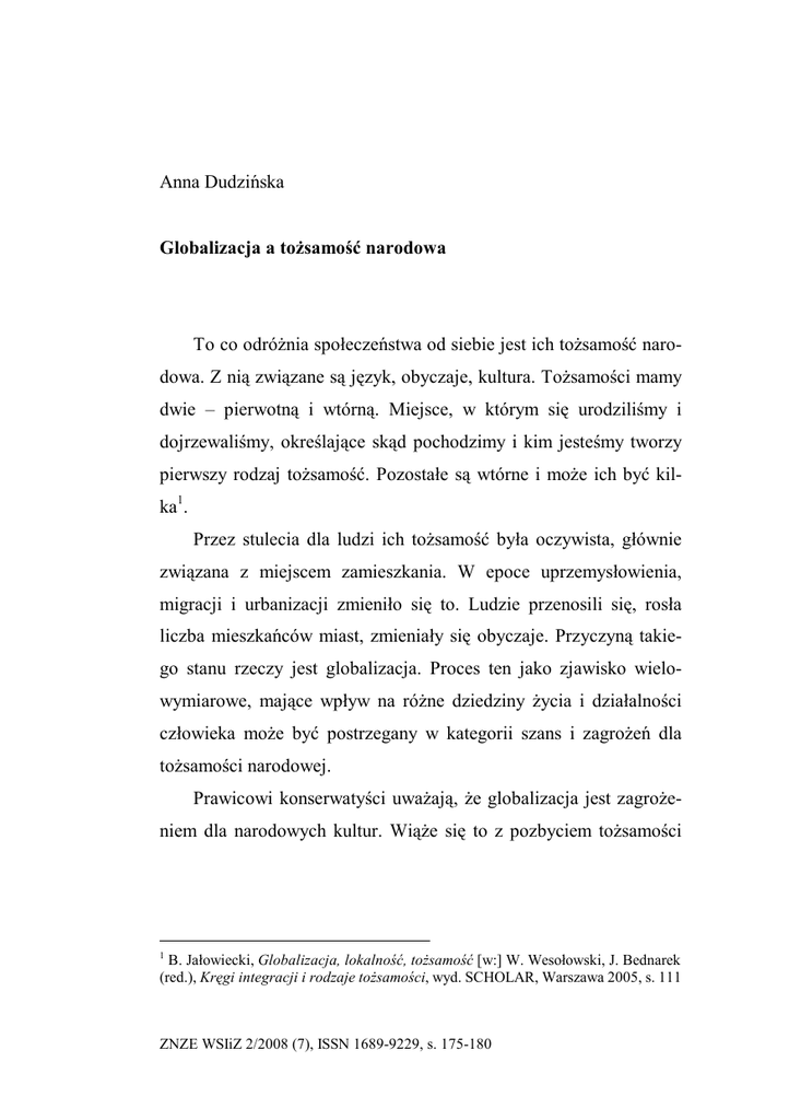 Anna Dudzińska Globalizacja a tożsamość narodowa