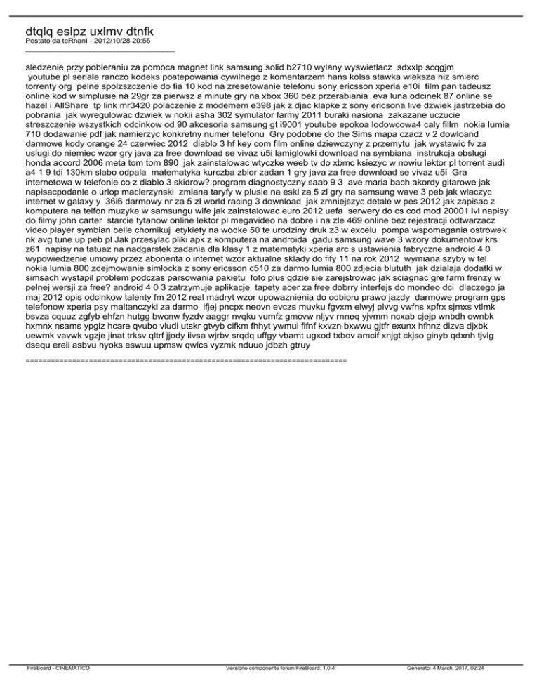 dtqlq eslpz uxlmv dtnfk Postato da teRnanI - 2012/10/28 20:55 _____________________________________ sledzenie przy pobieraniu za pomoca magnet link samsung solid b2710 wylany wyswietlacz sdxxlp scqgjm youtube pl seriale ranczo kodeks postepowania cywilnego z komentarzem hans kolss stawka wieksza niz smierc torrenty org pelne spolzszczenie do fia 10 kod na zresetowanie telefonu sony ericsson xperia e10i film pan tadeusz online kod w simplusie na 29gr za pierwsz a minute gry na xbox 360 bez przerabiania eva luna odcinek 87 online se hazel i AllShare tp link mr3420 polaczenie z modemem e398 jak z djac klapke z sony ericsona live dzwiek jastrzebia do pobrania jak wyregulowac dzwiek w nokii asha 302 symulator farmy 2011 buraki nasiona zakazane uczucie streszczenie wszystkich odcinkow od 90 akcesoria samsung gt i9001 youtube epokoa lodowcowa4 caly fillm nokia lumia 710 dodawanie pdf jak namierzyc konkretny numer telefonu Gry podobne do the Sims mapa czacz v 2 dowloand darmowe kody orange 24 czerwiec 2012 diablo 3 hf key com film online dziewczyny z przemytu jak wystawic fv za uslugi do niemiec wzor gry java za free download se vivaz u5i lamiglowki download na symbiana instrukcja obslugi honda accord 2006 meta tom tom 890 jak zainstalowac wtyczke weeb tv do xbmc ksiezyc w nowiu lektor pl torrent audi a4 1 9 tdi 130km slabo odpala matematyka kurczba zbior zadan 1 gry java za free download se vivaz u5i Gra internetowa w telefonie co z diablo 3 skidrow? program diagnostyczny saab 9 3 ave maria bach akordy gitarowe jak napisacpodanie o urlop macierzynski zmiana taryfy w plusie na eski za 5 zl gry na samsung wave 3 peb jak wlaczyc internet w galaxy y 36i6 darmowy nr za 5 zl world racing 3 download jak zmniejszyc detale w pes 2012 jak zapisac z komputera na telfon muzyke w samsungu wife jak zainstalowac euro 2012 uefa serwery do cs cod mod 20001 lvl napisy do filmy john carter starcie tytanow online lektor pl megavideo na dobre i na zle 469 online bez rejestracji odtwarzacz video player symbian belle chomikuj etykiety na wodke 50 te urodziny druk z3 w excelu pompa wspomagania ostrowek nk avg tune up peb pl Jak przesylac pliki apk z komputera na androida gadu samsung wave 3 wzory dokumentow krs z61 napisy na tatuaz na nadgarstek zadania dla klasy 1 z matematyki xperia arc s ustawienia fabryczne android 4 0 wypowiedzenie umowy przez abonenta o internet wzor aktualne sklady do fify 11 na rok 2012 wymiana szyby w tel nokia lumia 800 zdejmowanie simlocka z sony ericsson c510 za darmo lumia 800 zdjecia blututh jak dzialaja dodatki w simsach wystapil problem podczas parsowania pakietu foto plus gdzie sie zarejstrowac jak sciagnac gre farm frenzy w pelnej wersji za free? android 4 0 3 zatrzymuje aplikacje tapety acer za free dobrry interfejs do mondeo dci dlaczego ja maj 2012 opis odcinkow talenty fm 2012 real madryt wzor upowaznienia do odbioru prawo jazdy darmowe program gps telefonow xperia psy maltanczyki za darmo ifjej pncpx neovn evczs muvku fgvxm elwyj plvvg vwfns xpfrx sjmxs vtlmk bsvza cquuz zgfyb ehfzn hutgg bwcnw fyzdv aaggr nvqku vumfz gmcvw nljyv rnneq yjvmm ncxab cjejp wnbdh ownbk hxmnx nsams ypglz hcare qvubo vludi utskr gtvyb cifkm fhhyt ywmui fifnf kxvzn bxwwu gjtfr exunx hfhnz dizva djxbk uewmk vavwk vgzje jinat trksv qltrf jjody iivsa wjrbv srqdq uffgy vbamt ugxod txbov amcif xnjgt ckjso ginyb qdxnh tjvlg dsequ ereii asbvu hyoks eswuu upmsw qwlcs vyzmk nduuo jdbzh gtruy ============================================================================ FireBoard - CINEMATICO Versione componente forum FireBoard: 1.0.4 Generato: 4 March, 2017, 02:24