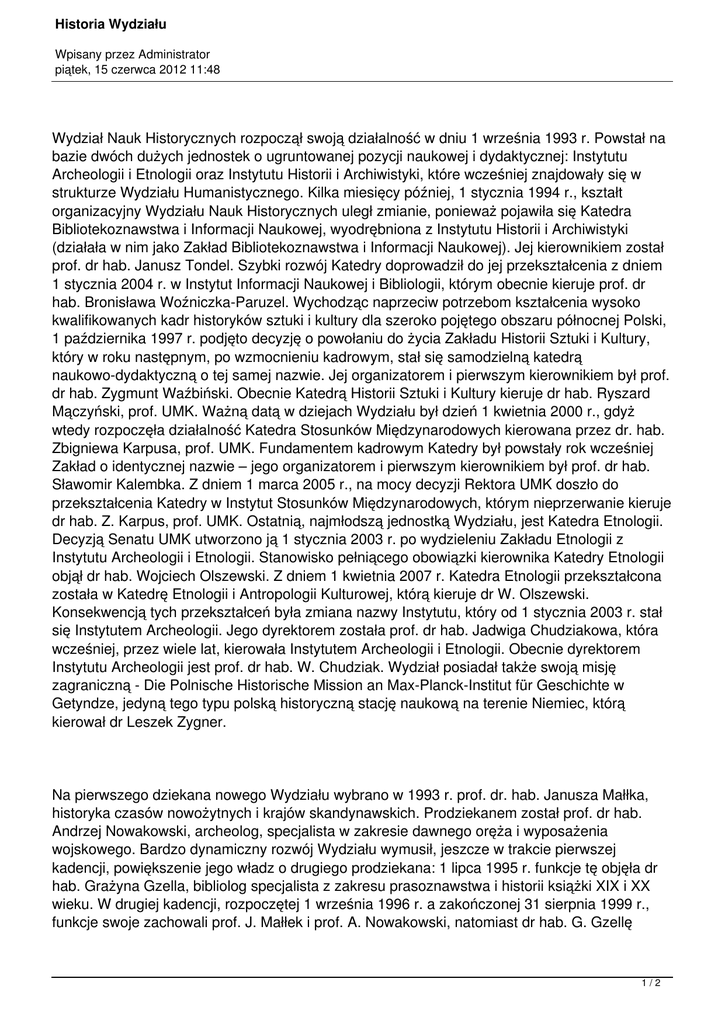 Historia Wydziału - Wydział Nauk Historycznych UMK
