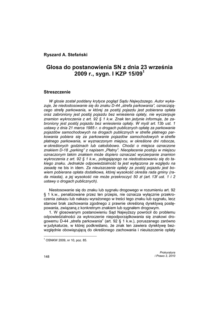 oprac. prof. dr hab. Ryszard A. Stefański do postanowienia Sądu