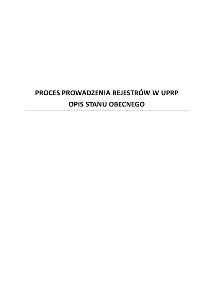 PROCES PROWADZENIA REJESTRÓW W UPRP OPIS STANU OBECNEGO PROCES PROWADZENIA REJESTRÓW W UPRP - OPIS STANU OBECNEGO SPIS TREŚCI 1. Wstęp .................................................................................................................................. 3 2. Metodyka ............................................................................................................................ 4 3. Proces dotyczący wpisu udzielonego prawa do rejestru patentowego lub rejestru wzorów użytkowych (PL) ............................................................................................................ 5 4. Proces dotyczący wpisu nowo udzielonego patentu europejskiego do wyodrębnionej części rejestru patentowego (PL/EP).......................................................................................... 7 5. Procesy dotyczące zmian w rejestrach ............................................................................... 9 5.1. Proces dotyczący wpisu do rejestru oświadczenia o gotowości udzielenia licencji otwartej ................................................................................................................................ 10 5.2. Proces dotyczący wpisu do rejestru wniosku o zajęcie oraz decyzji ......................... 11 5.3. Proces dotyczący wpisu do rejestru zastawu na wniosek lub zastawu rejestrowego 12 5.4. Proces dotyczący wpisu do rejestru wniosku o udzielenie dodatkowego prawa ochronnego oraz decyzji ...................................................................................................... 13 5.5. Proces dotyczący wpisu do rejestru wniosku o unieważnienie oraz decyzji............. 14 5.6. Proces dotyczący wpisu do rejestru wygaszenia z mocy ustawy .............................. 15 5.7. Proces dotyczący wpisu do rejestru decyzji o wygaszeniu z powodu braku opłaty . 16 5.8. Proces dotyczący wpisu do rejestru decyzji o wygaszeniu na wniosek (rezygnacja z ochrony) ............................................................................................................................... 17 5.9. Proces sprostowania wpisu w rejestrze .................................................................... 18 5.10. Proces dotyczący zmiany w rejestrze danych uprawnionego/ twórcy /licencjobiorcy ...................................................................................................................... 19 5.11. Proces dotyczący wpisu do rejestru przekształcenia patentu dodatkowego w samoistny ............................................................................................................................. 20 6. 5.12. Proces dotyczący wpisu do rejestru informacji o udzieleniu patentu dodatkowego 20 5.13. Proces wpisu do rejestru sprzeciwu oraz decyzji................................................... 21 Uwagi do procesów........................................................................................................... 22 Strona 2 PROCES PROWADZENIA REJESTRÓW W UPRP - OPIS STANU OBECNEGO 1. WSTĘP Strona 3 PROCES PROWADZENIA REJESTRÓW W UPRP - OPIS STANU OBECNEGO 2. METODYKA Przy realizacji zadania opisu procesów UPRP postępowano według następującej metodyki: 1. Przeprowadzenie wywiadów z przedstawicielami Zamawiającego. 2. Opisanie zidentyfikowanych procesów: a. Przedstawienie celu procesu b. Przedstawienie uczestników procesu c. Przedstawienie głównych kroków procesu 3. Graficzne przedstawienie procesu przy wykorzystaniu notacji UML na podstawie zebranych podczas wywiadów informacji. Opis notacji wykorzystanej w diagramach przedstawiono w poniższej tabeli. Numery przy czynnościach nie sa numerami porządkowymi, umożliwiają jednoznaczna identyfikacje danej czynności w trakcie wymiany uwag do dokumentu. 4. Przedstawienie uwag do procesów Symbol wykorzystany w diagramie Znaczenie symbolu act UPRP - Legenda Wykonywana czynność A act UPRP - Legenda Wykonywany proces składający się z szeregu czynności A act UPRP - Legenda Departament UPRP Obszar kompetencji, tu Departament w którym wykonywany jest dany fragment procesu act UPRP - Legenda A Bramka rozdzielająca – wykonanie czynności A lub czynności B B act UPRP - Legenda A Bramka rozdzielająca – wykonanie czynności A i czynności B B act UPRP - Legenda A Bramka łącząca B act UP... Początek procesu act UP... Koniec procesu Strona 4 PROCES PROWADZENIA REJESTRÓW W UPRP - OPIS STANU OBECNEGO 3. PROCES DOTYCZĄCY WPISU UDZIELONEGO PRAWA DO REJESTRU PATENTOWEGO LUB REJESTRU WZORÓW UŻYTKOWYCH (PL) Cel procesu: Utworzenie karty rejestrowej potwierdzającej stan prawny nowo udzielonego prawa wyłącznego. Główny uczestnik procesu: Departament rejestrów [DR] Główne kroki procesu: Przyjęcie decyzji warunkowej o udzieleniu prawa z [DP] Nadanie numeru rejestru i założenie stronicy rejestru papierowego Publikacja informacji o udzieleniu patentu lub prawa ochronnego na wzór użytkowy Eksport danych do systemów zewnętrznych Strona 5 PROCES PROWADZENIA REJESTRÓW W UPRP - OPIS STANU OBECNEGO act UPRP Procedura odw oław cza Nie wniesiono opłaty za I-wszy okres ochronny SOPRANO - decyzj a o w ygaśnięciu decyzj i w arunkow ej Przekazanie decyzji o udzieleniu prawa z [DP] SOPRANO - przekazanie na status Archiw um Eksport danych do systemów zew nętrznych Przekazanie akt do archiwum PAPIER - Założenie Karty Rej estrow ej (w ydruk z SOPRANO) Wniesiono opłatę za I-wszy okres ochrony Błędy w aktach Departament Rejestrów [DR] SOPRANO - przygotow anie publikacj i do WUP Porów nanie danych z akt z danymi w SOPRANO SOPRANO - przygotow anie dokumentu potw ierdzaj ącego udzielone praw o Wydanie dokumnetu potw ierdzaj acego udzielone praw o w raz z niezbednymi pieczęciami Przekazanie akt do odpow iedniego departamentu merytorycznego Dane poprawne Błędy w SOPRANO SOPRANO - modyfikacj a danych na podstaw ie akt Błąd Przekazanie akt do [DP] oraz sprostow anie/zmiana w SOPRANO Odbiór akt z [DP] oraz