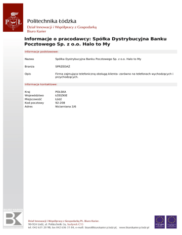 Spółka Dystrybucyjna Banku Pocztowego Sp. z oo Halo to My