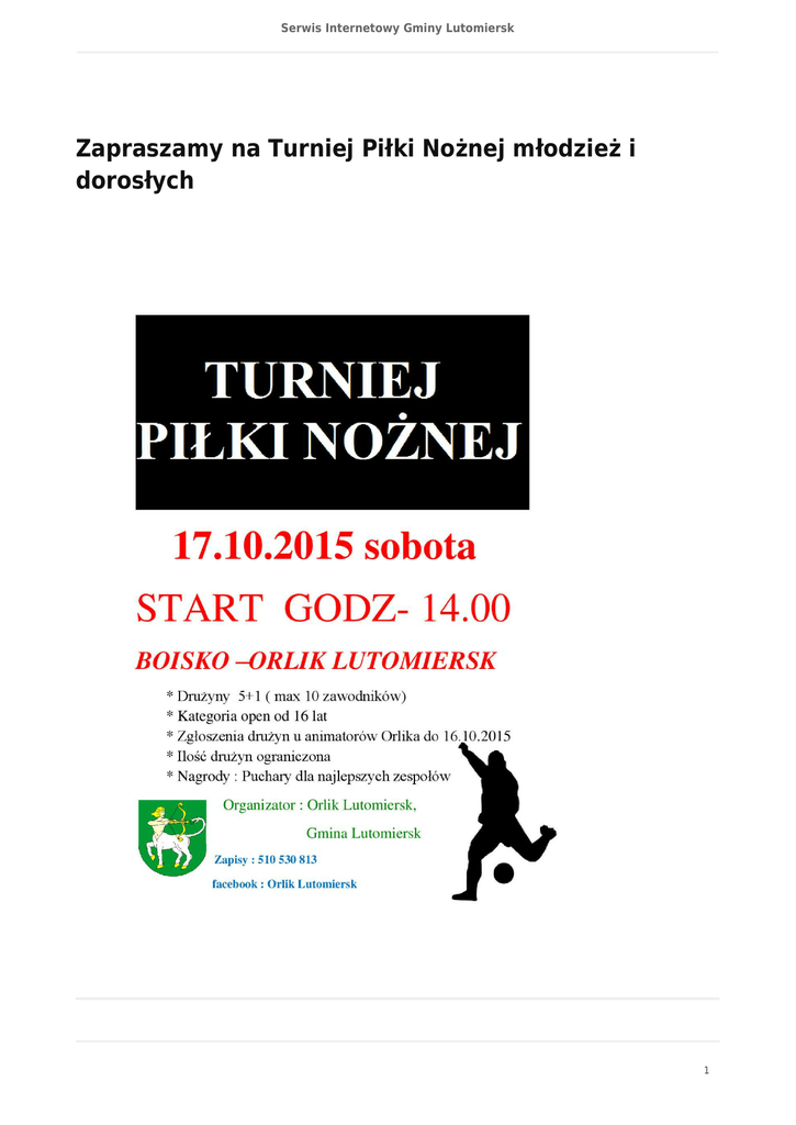 Serwis Internetowy Gminy Lutomiersk Zapraszamy na Turniej Piłki Nożnej młodzież i dorosłych 1