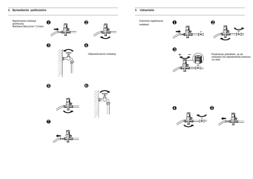 2. Sprawdzenie podlaczenia Napelnianie instalacji grzewczej. Nastawa fabryczna 1.5 bara. 3. ❶ ❷ ❸ ❹ Odpowietrzenie instalacji ❺ Ustawianie Cisnienie napelniania instalacji ❶ ❸ + Przekrecac pokretlem, az do ukazania sie odpowiedniej wartosci na skali. ❻ ❹ ❼ ❷ ❺ 4. Najwazniejsze wskazowki VF 06 D GB PL Medium: Wasser, max. 70 °C Betriebsdruck: max. 16 bar Werkseitig eingestellt auf 1,5 bar Ausgangsdruck 1.Benutzen Sie das Gerät in einwandfreiem Zustand bestimmungsgemäß sicherheits- und gefahrenbewußt. 2.Einbau-Anleitung beachten. 3.Störungen sofort beseitigen lassen. 4.Die Armaturen sind ausschließlich für die genannten Einsatzgebiete bestimmt. Jede andere Benutzung gilt als nicht bestimmungsgemäß. Medium: Water max. 70 °C Inlet pressure: max. 16.0 bar Set during manufacture at 1.5 bar outlet pressure 1.Use the appliance In good condition According to regulations With due regard to safety. 2.Follow installation instructions 3.Immediately rectify any malfunctions. 4.The valves are exclusively for use for applications detailed in these installation instructions. Any variation from this or other use will not comply with requirements. Medium: woda do 70 oC max. Cisnienie na wejsciu: do 16.0 bar Nastawa fabryczna: 1.5 bar na wyjsciu 1. Uzywac urzadzenie: w dobrym stanie zgodne z przepisami bezpieczne Milieu: Water tot max. 70 °C Bedrijfsdruk: max. 16 bar Af fabriek ingesteld op 1,5 bar Uitgangsdruk 1. Gebruik het apparaat in onberispelijke toestand volgens de voorschriften met in acht neming van de veiligheidsvoorschriften en mogelijke gevaren 2. Neem de inbouw-aanwijzing in acht 3. Laat storingen onmiddellijk repareren 4. De instrumenten zijn uitsluitend bestemd voor genoemde inzetmogelijkheden. Elk ander gebruik komt niet overeen met de voorschriften. I Ambiente: Acqua fino a 70 °C massime Pressione di esercizio: 16 bar massimo Regolato presso lo stabilimento costruttore su 1,5 bar pressione in uscita 1. Impiegare lapparecchio allo stato ineccepibile secondo la sua destinazione tenendo conto della sicurezza e dei pericoli 2. Attenersi alle istruzioni sullinstallazione 3. Provvedere allimmediata eliminazione dei disturbi 4. I raccordi sono destinati esclusivamente per i campi dimpiego indicati. Ogni altro impiego viene ritenuto inadeguato. Honeywell AG 02-672 Warszawa ul. Domaniewska 41 tel: (022) 606 09 00 1. Podlaczenie Przyklad podlaczenia 2. Przestrzegac instrukcji instalacji 3. Niezwlocznie usuwac wszelkie usterki 4. Zawor przeznaczony jest do instalacji przedstawionej w tej instrukcji instalacji. Skutkiem wszelkich odstepstw bedzie utrata gwarancji. 1.1 Montaz ❶ E Medio: Agua hasta máx. 70 °C Presión de trabajo máx. 16 bar Ajustado de fábrica a 1,5 bar de presión de salida 1. Utilizar el aparato en perfecto estado de funcionamiento de acuerdo con los fines previstos cumpliendo con las normas de seguridad y de funcionamiento 2. Observar las instrucciones de montaje. 3. Arreglar las averías de forma inmediata. 4. Los accesorios deberán utilizarse solamente para las aplicaciones mencionadas. Cualquier otro uso se considerará inadecuado a los fines previstos. W najnizszym punkcie istalacji grzewczej ❷ PLH2G007RP0109 NL INSTRUKCJA INSTALACJI PN ❸ PN