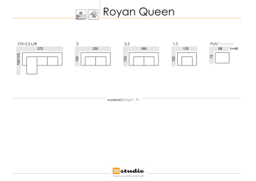 Royan Queen 1.5 198 wysokość/height: 90 www.sofa.net.pl Puf/Footstool 135 88 72 102 162/102 2.5 230 102 3 272 102 Chl+2.5 L/R h=48