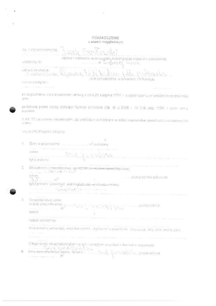 .;WIACCZENVE :; sianie majątkowym azwnxlcq w Cmżyoadk Lk komef *H @ .rcze; przez osoby pełniące fąmkc „ne ' 4 _„& , zpw ([ 10 mi _ Dz U z 2006 «' ;x1'215 0,7 uśżawy ośwvadcganm ze pas?:«ja'n wchod W ? W" m r r;»łczon y' "Wkł? rv „ XJ 5733315: 9)» WSG @ 'frdas 3-3 gśę ~m HZ Um.” WQEN! W W 4 hme nąeruchmm TP"-~: H »w„ ? TETE/« » dowmd *.* wxszokońcf d'?» „, ,?NCWE?) , [emmy wartośoowe ., Nan/ł gedmstek samorządu terytcrxa drodze orzeiargu * , h?. _ meme od ckavbu Pwistvł mval wei/„Ż od komunałne; Gscby ;" *Iwowj cscby prawne; prawna L;)? Podać mdm.]; mama daię nabywa lwow Ktore pomagało zbyciu w m;” @@ kogo W am 'ady widzom? » muuu/me 506% *dmałahcśó gospoda ::z'bnkven' rzadu fundacu pra (W "wem F2 JV IWJCŻJVŻ7 ", Mn „ 143:va W*Skc? EWFZ głym dqclm' x_ 4 ?. W* ”HEV! '”T'W GFC w XAyfikaxekJ ' pug/ue. ! ma M by, wywołag Ż/xj gr' łkdżh Drawa x WVL'OUU'ę NTW/C' Za ." strcnniczość lub mteresowncść handłcwego wykonuję ruzą wymemone zaleca tego tym u osxagnąłem(ełam) w "ŚR-U ybxegłym dochód w 'm./so!<nśc; AA))» K:) łą: ,. 2,5 : QX a” Mme em czmn'mem zarząfxm rady w Azorcze; am komąij «rewmym ,;302d7weh7: bi Jes tem CZIDHVE em zarządu tak nad? om;Lew lub Romą rewxzymrjpem ółdzvew Z ą s A _ (podać 'moną fungqę wazwę adreg sp » w a ], N29? tytułu żandiowegO' (nazwa Spółk; osrągmłemą'ęi fe f. *'ka Równocześr xe *, — ' a«:'r9$y„ erikośó udziałów Mość, w CKOSC' ioregh/m «jacked w ':ka cm—„wadczam "PM/varmm ”V:”, ZUSu: E_xgh :oó.% ;c w!” W* wj «„w: Nuo ”* „"OK”/WSZ praw/adm dzałalrtuścx gospodarczej na własny ramxmek am wspóćwfe : mymi cech—amx] nie dzem sz-ałełnośmą am n a jestem pradsiawcxeiem czy tę: c:?nmtocmkąem w ;g'mvadzeiir w dzsa'a'n: @: "' 2 Prcwadzę w wvze) okreśmny spcsób działalność pmegającą na 31V $me ›UŁ'EJ & Z fsgo Umm osmgnąłemęłam) w roku ubwegły-m dochód w WySOK'Ż/ŚCĘ ( P x-ą„ V ix f, vj_x _ . x V r Sdemkl n*«ema ruchome/ga @ wariośm pOW'yŻE—J ?O 0.30 mama?-cznych & podać marka mode! rok prodij:X » , x 'xxx'm '» ' wyr—:<):xfn,„›„1 ,'JE › „ ~ * ,X X x 5 ' 7 . * _ ' _* xx „ „ x, X N (_ .,. —' .. ,” ! UA V| pęnręzne % @ Nari: wdzwl ne (wobec ' mm w ”.* 000 for,/ch zvńązku z jakim w tym za zdeve'nem „ *yty & pozyczkp oraz W)? A w Z : tego tytułu oswągnąłemkław) w roku?.gbxegłym dochód w wysoko» fx. ,. „ .x › ' XV na » , ~.; ! NN & Powyższe ośwadczeme składamśwadomWa) że na podstawe ań ?997 @ ŻQJG Nr ramczemu pą'cwad7ema dzxałałnu'cę gospodarczą pr ust i 1031 mxds Nve ' ' ( 276 poz 15841 późn $ lx 'M r ' duty fw Nxawłaścx Al. , zm 0w › '; za podame meprawdy grazr Rara wzbewzema «>» , dmałaWnoścw wytworczej w rohnctme. » usźawy z dnia 21 se ubśmzne (Dz U 7,