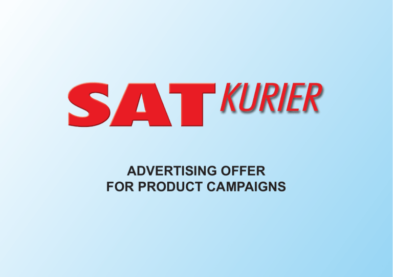 ADVERTISING OFFER FOR PRODUCT CAMPAIGNS MAGAZYN TELEWIZJI CYFROWEJ SATELLITE & MEDIA MONTHY MAGAZINE BASIC INFORMATION: - bi-monthly magazine from January 1997 to 2007 - monthly magazine from 2007 - 10 issues per year Standard volume: 64 pages (+4 covers and optionally inserts) Price: 8.00 PLN Print run: 15,000 copies PROFILE: - Polish international magazine (readers and distribution in 10 countries in Europe) - high quality graphics - printing from a roll in the well-known printer - European standard of journalism and knowledge of topics in the field of digital television MAGAZYN TELEWIZJI CYFROWEJ SATELLITE & MEDIA MONTHY MAGAZINE DISTRIBUTION NETWORK: - subscribers (own shipping by mail) - the largest press distributors (Kolporter, RUCH, EMPiK, InMedio, Garmond) - own network - 100 satellite TV companies (special yellow page) - VIP companies in Poland and abroad - satellite operators, DTH platforms, cable TV operators - representatives in TV channels and media MAIN SECTIONS: - TESTY - own editorial tests including satellite and DVB-T equipment tests - NOWE PRODUKTY - descriptions of new products on digital TV market - INFO - reports from the shows, information about satellite platforms, new channels, services, etc. - KOMENTARZ - feature articles about the situation on the Polish market - WYKAZY - FTA channels from 19.2°E and 13°E, Polish digital platform, MPEG channels from 90°E-45°W lists SPECIAL FEATURES OF SAT KURIER MAGAZINE: - the fastest access to all satellite equipment on the market - first-hand information from producers, broadcasters and our web portal - own reports of the largest trade shows in Europe (IFA, IBC, ANGA, CSTB, SAT Krak) - review the installation market for satellite TV - correspondents and friendly Internet services in Europe (Czech Republic, Slovakia, Ukraine, Israel, Germany, Croatia, Russia) - precise lists of digital channels from all over the orbit for satellite TV antennas installers SAT KURIER IS READ BY: - mainly men (95%) aged from 17 to 65 years, women aged 20-60 years (5%) - persons with above average incomes - persons with technical education - RTV-SAT companies - decision-makers - broadcasters - employees of cable networks and digital platforms - media people - installers - heads of satellite TV companies - TV-SAT enthusiasts - persons living in large, industrialized urban areas ADVERTISER PORTFOLIO PRINTED SAT KURIER MAGAZINE SATELLITE OPERATORS CODING SYSTEMS AND OPERATORS DTH OPERATORS PRODUCERS OF SATELLITE DISHES PRODUCERS DISTRIBUTORS TV CHANNELS EROTIC CHANNELS OTHER ADVERTISERS We also have an Internet portal Satkurier.pl, updated daily. You can also find a discussion forum and magazine editors blogs. MAIN SECTIONS: • PLATFORMY - important information about the leading DTH operators in Poland and worldwide • SPORT W TV - information about current sports events on TV • CYFROWE KANAŁY - information about new SD, HD and 3D channels, broadcasting both FTA and for payment in the cable and satellite networks; technical parameters • NAZIEMNA TELEWIZJA CYFROWA - current coverage maps and schedules for launches of DVB-T transmitters in Poland, as well as information about DVB-T in other European countries • SATELITY - information about the launches of new communications satellites, together with coverage maps and technical data • PRODUKTY - information about new products on the Polish digital TV market • ANALIZY I RAPORTY - information about the situation on the television markets in Europe • PROPOZYCJE PROGRAMOWE - information about the programs, films and series, both in linear television and through various kinds of services, including VOD satkurier.pl portal in numbers MONTHLY STATISTICS: • average of 1,000,000 visits • average of 2,450,000 page views DAILY STATISTICS: • average of 33,000 visits • average of 82,000 page views USERS: • approximately 252,000 unique users monthly • approximately 25% new visits satkurier.pl portal in numbers CONCLUSIONS: • most visitors from Poland • Mazovia, Silesia and Lesser Poland are regions with the largest number of visits • great interest in other European countries where Poles live (mainly in Germany and the UK) FORUM.satkurier.pl Forum, operating within satkurier.pl portal, is one of the largest Internet groups like this. Runs continuously from August 12th, 2006. Allows for the exchange of views between satellite technology amateur, media and people working in the industry. Number of posts: over 930,000, average of 255 new posts per day Number of topics: nearly 11,500, approximately 4 new topics per day Number of registered users: nearly 29,000, overage of 9-10 new registrations per day, unique accounts, the number includes only members who have passed the activation process, not sending spam accounts, which are constantly removed FORUM.satkurier.pl DIGI-TV.PL - WSZYSTKO CO CYFROWE Digi-tv.pl is our youngest project The website contains information about new products on the market of digital devices In 2010 on the market appeared 4 printed issues od Digi-tv.pl We are looking for partners for cooperation! We organize largest exhibition of digital TV in Poland - SAT KRAK for 10 years. Every year the exhibition has a growing interest in both companies wishing to showcase their latest products on the Polish market and visitors. The 10th edition of SAT KRAK 2014, the largest exhibition of digital television in Poland took place in the Galaxy Hotel in Kraków, Poland on 2-3.10.2014. „Future of digital terrestrial television in Poland. When will be DVB-T2 in Poland?” - these were the main topics of the exhibition. The event is organized in cooperation with SAT Kurier magazine. SAT KRAK is a project that provides measurable benefits not only for the distribution companies and producers, but also to visitors and potential customers. For exhibitors it is an opportunity to present their products, promote business, establish valuable business contacts, increase its turnover 
