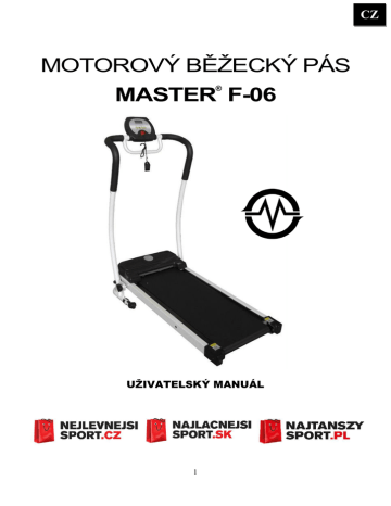 CZ MOTOROVÝ BĚŽECKÝ PÁS ® MASTER F-06 UŽIVATELSKÝ MANUÁL 1 CZ Tento výrobek má vysoký odběr el. proudu, nezapojujte jej proto do stejné zásuvky jako ostatní domácí spotřebiče s větším odběrem, jako je například klimatizace atd. Ujištěte se,že jistič je na 10 A a používejte zásuvku pouze pro tento stroj! Upozornění – Přečtěte si celý návod před použitím pásu. Pro prodloužení životnosti pásu je třeba provádět pravidelnou údržbu. Neprovádění pravidelné údržby může snížit záruku. 1.Důležité bezpečnostní upozornění Nebezpečí – abyste zamezili možnosti vzniku el. šoku, vždy odpojte stroj ze zásuvky po cvičení, při čištění nebo při provádění údržby. POUŽÍVEJTE POUZE DANÝ KABEL EL. NAPĚTÍ. NEPOUŽÍVEJTE NESPRÁVNÉ ADAPTÉRY NEBO JINAK UPRAVOVANÉ KABELY. Umístěte pás na rovnou a pevnou podlahu, zapojte do zásuvky s napětím 220-240 V (50/60Hz), s uzemněním. Nepokládejte pás na koberec s vysokým chlupem. Může dojít k poškození jak koberce tak stroje. Za strojem musí být volný minimálně 1 metr. Při použití dejte pás na rovnou a pevnou podlahu. Nikdy nenechávejte děti na nebo v blízkosti pásu. Ujistěte se, že když běžíte, mate zapnutý bezpečnostní klíč na oděvu. Je to pro vaši bezpečnost, pokud byste spadli nebo se dostali moc dozadu na pás. Při odepnutí bezp. Klíče pás zastaví. Udržujte ruce v bezpečné vzdálenosti od pohyblivých částí. Nikdy necvičte na stroji, pokud má poškozený kabel či konektor. Nenechávejte kabel u horkých ploch. Nepoužívejte stroj, pokud byly použity aerosolové spreje nebo pokud je v místnosti nedostatek kyslíku. Jiskry z motoru mohou zapálit vysoce hořlavé produkty. Nikdy nekapejte nebo nevkládejte žádné předměty do otevřených částí. Pás je vhodný pouze pro domácí použití, není určen pro dlouhotrvající používání. 2 CZ Pro odpojení pásu – vypněte všechny kontrolky do OFF pozice, odstraňte bezpečnostní klíč a pak vytáhněte kabel ze zásuvky. Senzory tepové frekvence nejsou určeny pro lékařské účely. Různé faktory, včetně pohybu uživatelů můžou způsobit nepřesnosti v měření tepové frekvence. Senzory tepové frekvence jsou určeny pouze pro cvičební účely pro určení vývoje tepové frekvence při cvičení. Při nastupování a vystupování z pásu používejte boční stupy, je to pro vaši bezpečnost. Používejte sportovní obuv s pevnou patou. Doporučujeme používat běžeckou obuv. Boty s vysokým podpatkem, látkové boty, sandály či bosé nohy nejsou vhodné při použití pásu. Provozní teplota: 5 – 40 C. Po použití vytáhněte bezpečnostní klíč. 1.1 Důležité elektrické informace POZOR! NIKDY nepoužívejte neuzemněnou zásuvky el. Napětí pro tento stroj. Dejte zástrčku pryč od pohyblivých části pásu, včetně zvedacího mechanismu a transportních koleček. NIKDY neodstraňujte žádný kryt bez předchozího vypnutí ze zásuvky el. Napětí. NIKDY nevystavujte pás dešti či vlhku. Tento stroj není určen pro venkovní použití, nedávejte jej do blízkosti bazénu či jiného prostředí s vysokou vlhkostí. 1.2 Důležité provozní informace Před použitím stroje si nejdříve přečtěte tento návod na použití. Změny v rychlosti či zdvihu nemůžou probíhat okamžitě. Nastavte si vaši požadovanou rychlost na computeru. Computer bude měnit rychlost postupně. Buďte opatrní, pokud při běhání na pásu provádíte i jiné činnosti, jako je např. Sledování televise, čtení apod. Může to způsobit ztrátu rovnováhy a následné zranění. Abyste zamezili ztrátě rovnováhy NIKDY nenastupujte či nevystupujte z pásu, když je v pohybu. Pás začíná na velmi nízké rychlosti. To umožní jednoduchý nástup na pás. Vždy se držte rukojetí, když manipulujete s computerem. Tento stroj je dodáván s bezpečnostním klíčem. Vyjmutý bezpečnostní klíč ihned zastaví pás, automaticky se vypne. Pro návrat opět připevněte bezpečnostní klíč. Netlačte nadměrným tlakem na tlačítka na computeru. Stačí malý tlak. Rychlost pásu je od 0.5-7km/hod. 3 CZ 2. Hlavní technické informace Hlavní účel: cvičení, udržení kondice Tento stroj je určen pouze pro domácí použití Nepřetržitý čas běhu: < 2 hodiny Jakmile je pás v provozu 1 měsíc nebo 40 hodin, doplňte prosím 20 ml silikonového oleje na desku pod pás. Displej: LCD DC Motor: 300W Běžecký pás: 800x300 mm Provozní teplota: 5-40 ºC Rychlost: 0,5 ~ 7 km/h Čas:0:00-99:59 (minuty : sekundy); Vzdálenost: 0.00~9.99km Kalorie: 0.00~999 kalorií Rozměry (D*Š*V): 1165X540X1030 mm Nosnost: 100 kg 4 CZ 3. Obsah balení číslo 1 2 3 4 5 6 7 8 9 název computer bezpečnostní klíč madlo zajišťovací otvor zajišťovací otvor vypínač běžecký pás protiskluzová podložka imbus. klíč 5 množství 1 1 1 1 1 1 1 1 1 CZ 4. Montáž odstraňte přepravní pásku zvedněte madlo vzhůru zajistěte fixačním kolečkem zvedněte computer do optimální plohy 4.1 Skládání pásu vyšroubujte fixační kolečko zvedněte běžeckou plochu vzhůru zajistěte fixačním kolečkem nakloňte computer do optimální plohy 6 CZ 5. Provozní pokyny 5.1 Displej computeru Computer pásu umožňuje pracovat s funkcemi “TIME” (čas), “SPEED” (rychlost), “DISTANCE” (vzdálenost), “CALORIES” (kalorie). 1. 2. 3. 4. “TIME” – funkce zobrazuje aktuální čas běhu: 0:00 – 99:59. “SPEED” – funkce zobrazuje informace o aktuální rychlosti běhu: 0,0 – 7,0 km/h. “DISTANCE” – funkce zobrazuje uběhnutou vzdálenost 0.00 - 9.99km. “CALORIES” – okénko zobrazuje spálené kalorie: 0,00 – 99,9. 5.2 Tlačítka computeru (1) POWER – tlačítko slouží k zapnutí a vypnutí computeru. (2) MODE – tlačítko slouží k výběru programů. (3) INCREASE SPEED – zm