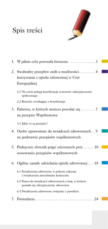 Spis treÊci 1. W jakim celu powsta∏a broszura . . . . . . . . . . . . . 3 2. Swobodny przep∏yw osób a mo˝liwoÊci . . . . . . . . 4 korzystania z opieki zdrowotnej w Unii Europejskiej 2.1 Na czym polega koordynacja systemów zabezpieczenia spo∏ecznego. 2.2 KorzyÊci wynikajàce z koordynacji. 3. Paƒstwa, w których mo˝esz powo∏aç si´ . . . . . . . 7 na przepisy Wspólnotowe 3.1 Jakie to sà przepisy? 4. Osoby uprawnione do Êwiadczeƒ zdrowotnych . . 9 na podstawie przepisów wspólnotowych 5. Podr´czny s∏ownik poj´ç u˝ywanych przy . . . . . 10 stosowaniu przepisów wspólnotowych 6. Ogólne zasady udzielania opieki zdrowotnej . . . 18 6.1 Âwiadczenia zdrowotne w pe∏nym zakresie i Êwiadczenia natychmiast konieczne 6.2 Prawo do Êwiadczeƒ zdrowotnych a kraj, w którym posiada si´ ubezpieczenie zdrowotne 6.3 Âwiadczenia zdrowotne zwiàzane z porodem 7. Formularze. . . . . . . . . . . . . . . . . . . . . . . . . . . . . 24 8. FormalnoÊci. . . . . . . . . . . . . . . . . . . . . . . . . 34 8.1 Pracownicy najemni oraz osoby samodzielnie zarobkujàce 8.2 Pracownicy przygraniczni 8.3 Pracownicy sezonowi 8.4 Pracownicy transportu mi´dzynarodowego 8.5 Pracownicy wys∏ani 8.6 Studenci 8.7 TuryÊci 8.8 Emeryci i renciÊci mieszkajàcy w innym paƒstwie ni˝ paƒstwo, z którego otrzymujà Êwiadczenia emerytalne lub rentowe 8.9 Emeryci i renciÊci przebywajàcy czasowo w innym paƒstwie ni˝ paƒstwo, z którego otrzymujà Êwiadczenia emerytalne lub rentowe 8.10 Osoby ubiegajàce si´ o emerytur´ lub rent´ 8.11 Bezrobotni poszukujàcy pracy w innym paƒstwie cz∏onkowskim oraz cz∏onkowie ich rodzin 8.12 Cz∏onkowie rodziny osoby ubezpieczonej 8.13 Aby wyjechaç do innego kraju na leczenie.... 8.14 Wypadki przy pracy i choroby zawodowe 9. Wykaz polskich instytucji . . . . . . . . . . . . . . 76 zaanga˝owanych w koordynacj´ systemów zabezpieczenia spo∏ecznego w cz´Êci dotyczàcej Êwiadczeƒ leczniczych 1. W jakim celu powsta∏a broszura Z chwilà przystàpienia Polski do Unii Europejskiej nasz kraj stanie si´ jednym z paƒstw cz∏onkowskich Wspólnoty. Obywatele naszego kraju jak równie˝ inne osoby wymienione w tej broszurze uzyskajà takie same prawa i obowiàzki jak obywatele innych paƒstw cz∏onkowskich Unii. Celem broszury jest pomoc w zapoznaniu si´ z nowymi prawami i obowiàzkami wynikajàcymi z przepisów unijnych o opiece zdrowotnej, które b´dà obowiàzywa∏y tak˝e Polaków podró˝ujàcych po terytorium Unii Europejskiej. Z tej broszury dowiesz si´: • kto ma prawo do opieki zdrowotnej na terenie Wspólnoty, • na jakich warunkach ta opieka jest udzielana, • jakich formalnoÊci nale˝y dope∏niç, by mo˝liwe by∏o korzystanie z przys∏ugujàcych nam praw. 3 2. Swobodny przep∏yw osób a mo˝liwoÊci korzystania z opieki zdrowotnej w Unii Europejskiej Ka˝dy obywatel paƒstwa cz∏onkowskiego Unii Europejskiej ma prawo do swobodnego podró˝owania, podejmowania pracy, studiowania i zamieszkiwania w wybranym przez siebie paƒstwie lub paƒstwach Wspólnoty. JeÊli posiada on ubezpieczenie zdrowotne w powszechnym systemie ubezpieczenia zdrowotnego w jakimkolwiek z krajów Wspólnoty, to prawo do opieki zdrowotnej „podró˝uje” razem z nim. Zasady udzielania tej opieki i jej zakres okreÊlajà przepisy Wspólnotowe o koordynacji systemów zabezpieczenia spo∏ecznego. Uwaga! Je˝eli sk∏adki na ubezpieczenie zdrowotne odprowadzane sà do Twojej kasy chorych 4 w Polsce oznacza to, ˝e jesteÊ obj´ty polskim, powszechnym systemem ubezpieczenia zdrowotnego. 2.1 Na czym polega koordynacja systemów zabezpieczenia spo∏ecznego Ka˝de paƒstwo cz∏onkowskie posiada w∏asny system ubezpieczenia zdrowotnego i samo decyduje, kto i na jakich zasadach podlega ubezpieczeniu, jakie nale˝à si´ mu Êwiadczenia i jakie sk∏adki sà na to ubezpieczenie odprowadzane. Koordynacja polega na wprowadzeniu i stosowaniu wspólnych dla wszystkich paƒstw cz∏onkowskich zasad i regu∏, które okreÊlajà, na jakich warunkach mo˝esz otrzymaç opiek´ zdrowotnà i w jakim zakresie ta opieka Tobie przys∏uguje. Zasady te i regu∏y muszà byç przestrzegane przez w∏adze krajowe, przez instytucje ubezpieczeƒ spo∏ecznych oraz przez sàdy i trybuna∏y ka˝dego z paƒstw Wspólnoty. Uwaga! Przepisy Wspólnotowe o koordynacji dotyczà wy∏àcznie osób, które posiadajà ubezpieczenie w powszechnym systemie ubezpieczenia zdrowotnego w jakimkolwiek 5 z krajów Unii Europejskiej i zaczynajà obowiàzywaç dopiero w momencie przemieszczania si´ ubezpieczonego do innego kraju Unii Europejskiej. 2.2 KorzyÊci wynikajàce z koordynacji Przepisy Wspólnotowe chronià ubezpieczonego przed utratà jego prawa do korzystania z ubezpieczenia zdrowotnego w przypadku wyjazdu do innego kraju Unii Europejskiej i dajà mu gwarancj´ równego traktowania z ubezpieczonymi obywatelami paƒstwa cz∏onkowskiego, do którego postanawia przyjechaç, aby tam zamieszkaç, pracowaç, studiowaç itp. 6 3. Paƒstwa, w których mo˝esz powo∏aç si´ na przepisy Wspólnotowe Na przepisy Wspólnotowe dotyczàce opieki zdrowotnej mo˝esz powo∏ywaç si´ w paƒstwach, które nale˝à do Unii Europejskiej. Pami´taj jednak, ˝e w przypadku: Danii – przepisów wspólnotowych nie stosuje si´ na obszarze Grenlandii i Wysp Faro, Francji – przepisy wspólnotowe stosuje si´ równie˝ na obszarze Gujany Francuskiej, Reunion, Gwadelupy oraz Martyniki, Portugalii – przepisy wspólnotowe stosuje si´ równie˝ na Azorach i Maderze, Wielkiej Brytanii – przepisy wspólnotowe stosuje si´ równie˝ na obszarze Gibraltaru, ale nie stosuje si´ na obszarze Wysp Normandzkich oraz Wysp Mann. Na przepisy Wspólnotowe mo˝esz powo∏ywaç si´ tak˝e w paƒstwach nale˝àcych do Europejskiego Obszaru Gospodarczego (Islandii, Lichtensteinie, Norwegii) oraz Szwajcarii. 7 3.1 Jakie to sà przepisy? Zasady koordynacji systemów zabezpieczenia spo∏ecznego oraz szczegó∏owe wa