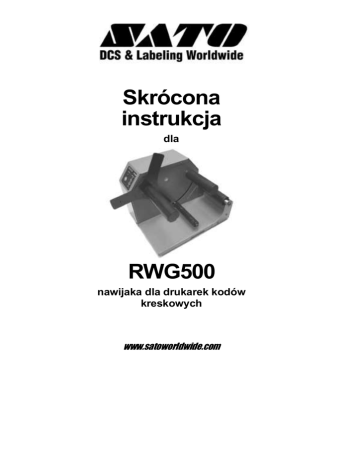 Skrócona instrukcja dla RWG500 nawijaka dla drukarek kodów kreskowych www.satoworldwide.com Wprowadzenie Dziękujemy za dokonanie zakupu nawijaka nowej generacji SATO RWG500 dla drukarek kodów kreskowych SATO. Niniejsza skrócona instrukcja ma na celu zapoznanie użytkownika z produktem, aby pomóc w rozpoczęciu użytkowania urządzenia w jak najkrótszym czasie. W celu skorzystania w maksymalnym stopniu z inteligentnych właściwości RWG500, należy przed przystąpieniem do stosowania tego urządzenia starannie zapoznać się z tą instrukcją. Spis Treści Wprowadzenie..................................................2 Symbole bezpieczeństwa ................................3 Środki bezpieczeństwa ....................................4 Instrukcja FCC ................................................6 Zawartość opakowania ....................................7 Identyfikacja części .........................................8 Identyfikacja części ..........................................9 Przygotowanie płyty mocującej ........................10 Dopasowanie wysokości rolki ..........................14 Instalacja płyty mocującej ................................15 Ustawienie etykiety...........................................17 Działanie podstawowe .....................................23 Nawijanie etykiet 6" ..........................................25 Instalacja zestawu rozszerzającego 6" ...........26 Podstawowe specyfikacje ................................27 Symbole bezpieczeństwa Informacja o symbolach ostrzegawczych W niniejszej instrukcji zastosowano kilka symboli i ikon ostrzegawczych, aby zapewnić bezpieczeństwo w użytkowaniu drukarki użytkownikowi, innym ludziom oraz mieniu. Symbole zostaną zaprezentowane na kolejnych stronach. Prosimy o uważne przeczytanie i zrozumienie ich znaczenia. Ostrzeżenie Uwaga Jeżeli znak i jego ostrzeżenie zostaną zignorowane, niewłaściwe zachowanie może doprowadzić do śmierci lub poważnych urazów. Jeżeli znak i jego ostrzeżenie zostaną zignorowane, niewłaściwe zachowanie może doprowadzić do poważnych urazów lub zniszczenia mienia. Przykłady Znak trójkąta oznacza „Zachowaj ostrożność”. Zawartość trójkąta oznacza rodzaj niebezpieczeństwa. W tym przypadku, znak po lewej oznacza „Ostrożnie. Ryzyko porażenia prądem”. Okrągły znak oznacza „Zakaz”. Zawartość okręgu oznacza rodzaj zakazu. W tym przypadku, znak po lewej oznacza „Zakaz demontażu”. Czarny okrągły znak oznacza „Nakaz”. Zawartość okręgu oznacza rodzaj nakazu. W tym przypadku, znak po lewej oznacza „Wtyczka musi być odłączona z gniazdka”. Środki ostrożności Ostrzeżenie Uwaga Ostrzeżenie Uwaga Nie umieszczać na niestabilnym miejscu. Nie umieszczać nawijaka na niestabilnym miejscu, jak np. niestabilny stół, nachylona powierzchnia lub miejsce podlegające wibracjom. Nawijak może spaść lub się przewrócić i spowodować obrażenia. Ciecze Nie umieszczać w pobliżu nawijaka żadnych pojemników z wodą lub chemikaliami, takich jak wazony do kwiatów lub puchary, jak również małych przedmiotów metalowych. Kontynuacja użytkowania stwarza zagrożenie pożarem lub porażeniem elektrycznym. * W przypadku przedostania się ww. substancji do nawiajaka, należy go natychmiast wyłączyć i skontaktować się z najbliższym dystrybutorem lub centrum obsługowym. Obce ciało Nie upuszczać lub wprowadzać przedmiotów metalowych lub palnych do otworów na nawijaku. Kontynuacja użytkowania stwarza zagrożenie pożarem lub porażeniem elektrycznym. *W przypadku przedostania się ww. substancji do nawijaka, należy go natychmiast wyłączyć i skontaktować się z najbliższym dystrybutorem lub centrum obsługowym. Upadek i uszkodzenie Jeśli produkt upadł lub uległ uszkodzeniu nie należy go używać. Kontynuacja użytkowania stwarza zagrożenie pożarem lub porażeniem elektrycznym . * W przypadku upadku lub jakiegokolwiek uszkodzenia nawijaka, należy go natychmiast wyłączyć i skontaktować się z najbliższym dystrybutorem lub centrum obsługowym. Kontynuacja użytkowania stwarza zagrożenie pożarem lub porażeniem elektrycznym . Ostrzeżenie Uwaga Ostrzeżenie Uwaga Nieprawidłowe warunki Nie używać nawijaka, jeśli wydobywa się z niego dym lub nieznany zapach. Kontynuacja użytkowania stwarza zagrożenie pożarem lub porażeniem elektrycznym . * Należy natychmiast wyłączyć zasilanie i skontaktować się z najbliższym dystrybutorem lub centrum obsługowym, w celu dokonania naprawy. Nie naprawiać nawijaka we własnym zakresie. Demontaż Nigdy nie modyfikować lub nie rozkładać urządzenia na części. Może to stwarzać zagrożenie pożarem lub porażeniem elektrycznym. Skontaktować się z najbliższym dystrybutorem lub centrum obsługowym w celu dokonania naprawy. Lokalizacja Nie ustawiać nawijaka w miejscach charakteryzujących się wysoką wilgotnością lub roszeniem. Może to stwarzać zagrożenie pożarem lub porażeniem elektrycznym. * W przypadku utworzenia się rosy wewnątrz nawijaka, należy natychmiast wyłączyć zasilanie i nie używać do czasu wysuszenia. ABY ZAPEWNIĆ STAŁĄ OCHRONĘ PRZED RYZYKIEM POŻARU, PRZY WYMIANIE NALEŻY STOSOWAĆ WYŁĄCZNIE BEZPIECZNIK TEGO SAMEGO TYPU I O TYCH SAMYCH PARAMETRACH. LOKALIZACJA : F1 , F2 PARAMETRY: 125V 3.5A Instrukcja FCC Urządzenie to zostało przetestowane i zakwalifikowane jako zgodne z wymaganiami dla urządzenia cyfrowego klasy B, zgodnie z Częścią 15 przepisów FCC. Wymagania te zostały stworzone w celu zapewnienia należytej ochrony przed szkodliwymi zakłóceniami w domowej instalacji. Urządzenie wymaga używania energii o częstotliwości radiowej i może ją emitować. Dlatego też, jeżeli nie jest zainstalowane i używane zgodnie z instrukcjami, może powodować szkodliwe zakłócenia w komunikacji radiowej. Nie można jednak zagwarantować, że zakłócenia nie wystąpią w danej instalacji. W przypadku,