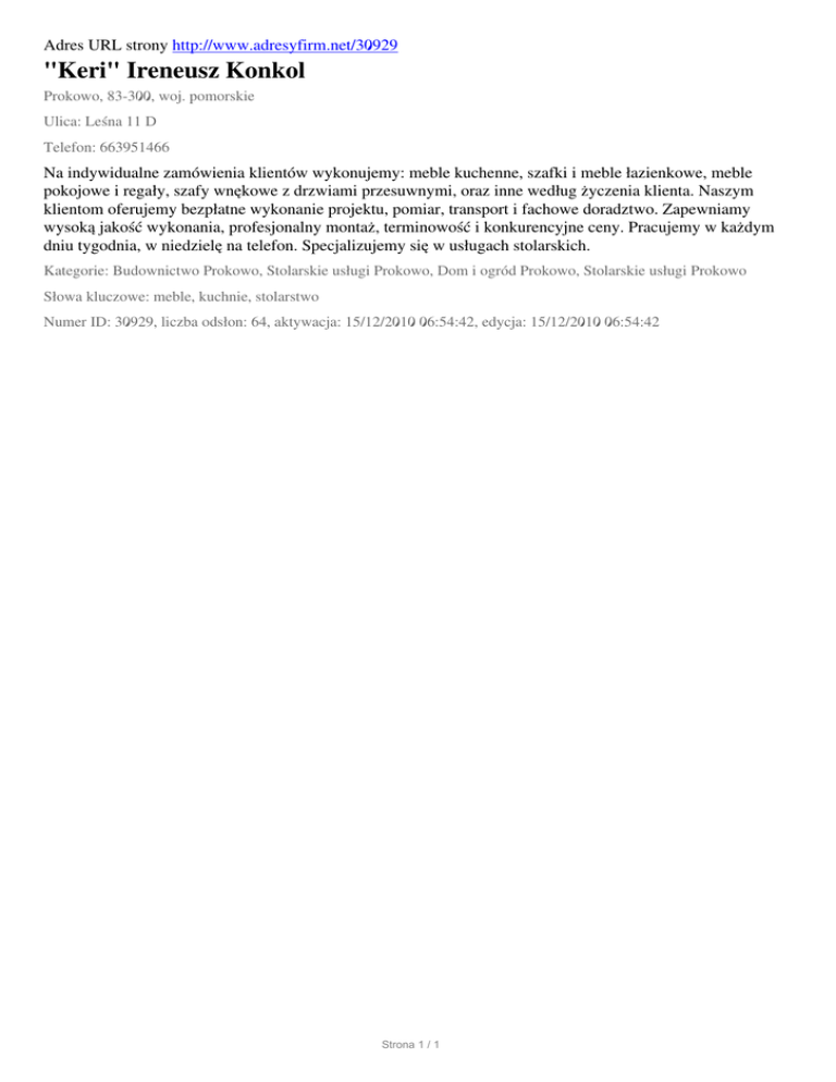 "Keri" Ireneusz Konkol, Prokowo, Lesna 11 D