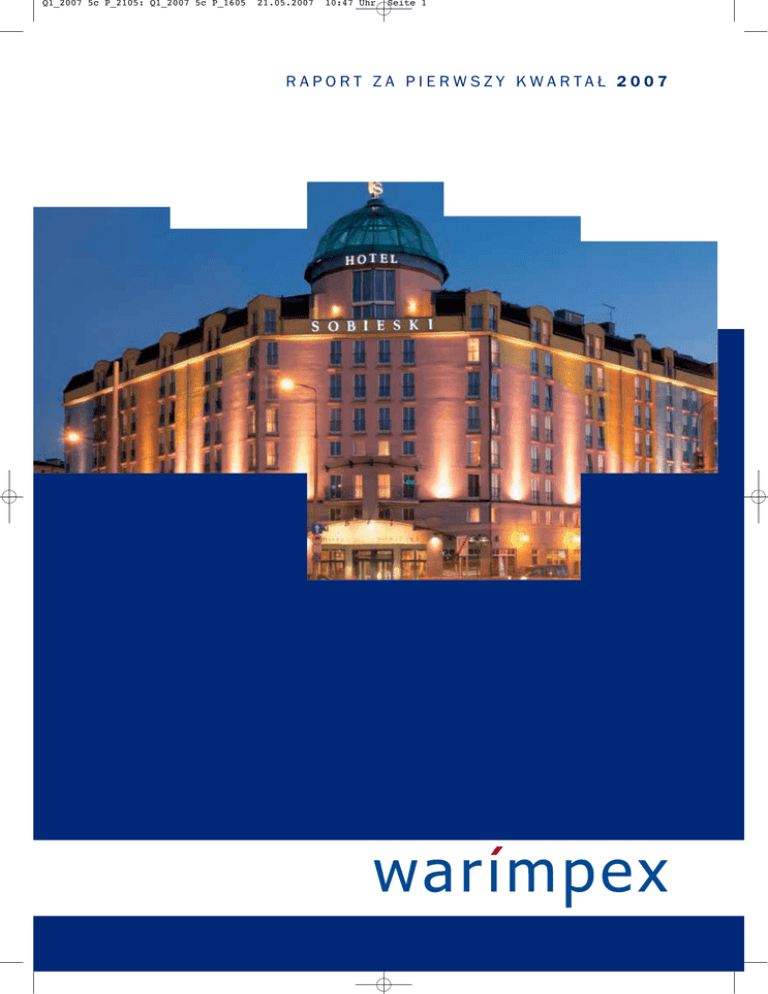Q1_2007 5c P_2105: Q1_2007 5c P_1605 21.05.2007 10:47 Uhr Seite 1 RAPORT ZA PIERWSZY KWARTAŁ 2007 Q1_2007 5c P_2105: Q1_2007 5c P_1605 21.05.2007 10:47 Uhr Seite 2 Wskaźniki Grupy Warimpex w TEUR Q1/2007 Q1/2006 11.884 7.591 2.637 1.004 14.522 8.595 2.177 – EBITDA 4.017 1.225 EBIT 1.853 – 650 Wynik okresu netto 107 –822 Przepływy pieniężne z działalności operacyjnej 390 – 49 Suma bilansowa 409.669 259.593 Kapitał własny 147.683 78.766 12 8 Przychody ze sprzedaży w segmencie „Hotels & Resorts” Przychody ze sprzedaży w segmencie „Asset Management & Development” Przychody ze sprzedaży razem Przychody ze sprzedaży spółek projektowych Ilość hoteli 7 6 10 7 1.040 813 Ilość nieruchomości biurowych i przemysłowych Ilość projektów w zakresie rozwoju hoteli Ø Zatrudnienie w Grupie Wskaźniki akcji ■ ISIN ■ Ilość akcji 36.000.000 ■ Ticker Stock Exchanges WXF | Reuters WXFB.VI ■ Kurs emisji EUR 11,00 | PLN 42,83 ■ Najwyższy kurs EUR 14,00 | PLN 56,00 ■ Najniższy kurs EUR 11,32 | PLN 45,00 ■ Kurs na 30.3.2007 EUR 12,00 | PLN 48,48 AT0000827209 Q1_2007 5c P_2105: Q1_2007 5c P_1605 21.05.2007 10:47 Uhr Seite 3 RAPORT ZA PIERWSZY KWARTAŁ 2007 Środowisko gospodarcze Rosnący rynek Europy Wschodniej Warimpex był jednym z pierwszych międzynarodowych przedsiębiorstw, które na początku lat osiemdziesiątych rozpoczęły realizację hoteli w Czechach, na Węgrzech i w Polsce. Opierając się na ponad 25-letnim doświadczeniu na tych rynkach i posiadając oddziały w Warszawie, Pradze i Budapeszcie, Warimpex może dziś szybko i efektywnie rozpoznawać szanse na rynku. Krajowe rynki Warimpexu w Czechach, Polsce i na Węgrzech oraz dalsze interesujące rynki, takie jak Rosja czy Rumunia, na których Warimpex jest już obecny lub na których będzie dokonywał ekspansji, w ostatnich latach bardzo się zmieniły i dynamicznie rozwinęły. Nieprzerwanie silny, nawet jeśli w porównaniu z poprzednimi latami nieco wolniejszy, jest wzrost gospodarczy w krajach regionu CEE – Europy Środkowo-Wschodniej, wykazując wyniki dalece przewyższające te w krajach strefy Euro. Polska, największy rynek Europy Środkowo-Wschodniej, ze wzrostem PKB w wysokości 5,8% w roku 2006 oraz oczekiwanym wzrostem PKB 5,8% w roku 2007, wykazuje wzrost godny podziwu. Czechy ze wzrostem PKB w wysokości 6,1% w roku 2006 utrzymywały bardzo wysoką koniunkturę, na rok 2007 oczekuje się umiarkowanych 4,8%. Jedynie Węgry musiały zaakceptować niewielki spadek wzrostu gospodarczego do 3,9%, w roku 2007 oczekiwany jest spadek do 2,8%. Także najnowszy rynek Warimpexu – Rosja – rozwija się niezwykle dynamicznie. W roku 2006 zanotowano tam wzrost PKB w wysokości 6,7%, również w roku 2007 oczekuje się bardzo dynamicznego wzrostu na poziomie 6,4%. Główne transakcje i zadania w pierwszym kwartale IPO w styczniu 2007 w Wiedniu i w Warszawie W styczniu 2007 dokonało się pomyślne wejście na giełdę spółki Warimpex Finanz- und Beteiligungs AG, jej akcje zostały dopuszczone do obrotu na giełdach w Wiedniu i w Warszawie. Popyt inwestorów krajowych i zagranicznych znacząco przewyższał ofertę. Oferowane 10 milionów akcji spotkało się z popytem na ponad 140 mln sztuk. Przy kursie emisyjnym w wysokości 11 EUR wzgl. 42,83 zł oznaczało to ponad 14-krotną nadsubskrypcję. Realizacja projektów nieruchomościowych – sprzedaż biurowca w Pradze Pod koniec marca zakończyły się negocjacje dotyczące sprzedaży w całości wynajętej i tym samym dojrzałej do realizacji nieruchomości biurowej w Pradze. 50% spółki właścicielskiej sprzedano partnerowi joint venture. Odpowiada to strategii „hybrydowej” spółki nieruchomościowej, rozwijającej projekty, zagospodarowującej je po ukończeniu i sprzedającej w zależności od sytuacji rynkowej i stopnia dojrzałości, jeśli w perspektywie pojawia się możliwość osiągnięcia najwyższej wartości dodanej. W ten sposób dzięki sprzedaży nieruchomości możliwa jest poprawa przepływów pieniężnych i inwestycja przychodów ze sprzedaży zgodnie ze strategią długoterminową „Develop 3, Sell 1” w trzy nowe projekty. Ponadto Warimpex jako jedna z nielicznych nieruchomościowych spółek akcyjnych jest w stanie co roku wypłacać dywidendę. Dzięki takiej strategii co roku możliwe jest osiąganie zysków pieniężnych i jednocześnie rozbudowa majątku nieruchomościowego. Raport okresowy za I kwartał 2007 03 Q1_2007 5c P_2105: Q1_2007 5c P_1605 21.05.2007 10:47 Uhr Seite 4 R A P O R T Z A P I E R W S Z Y K W A R TA Ł 2 0 0 7 Rozwój działalności Warimpex obecny jest w sześciu krajach w Europie Środkowej, Centralnej i przede wszystkim Wschodniej. Nasze portfolio koncentrujemy głównie na rynkach krajowych Czech, Polski i Węgier oraz na przyszłościowym rynku rosyjskim. W podziale sektorowym największy udział, tj. ok. 90% istniejącego majątku nieruchomościowego przypada na nieruchomości hotelowe, a ok. 10% na biurowe. W okresie sprawozdawczym Warimpex wyraźnie poprawił wszystkie istotne wskaźniki przedsiębiorstwa. Pierwszy kwartał był więc kontynuacją dynamicznego kursu ekspansji minionego roku obrotowego. W porównaniu z pierwszym kwartałem ubiegłego roku przychody ze sprzedaży wzrosły o 69% z 8,6 mln EUR do 14,5 mln EUR. Wyraźnej poprawie uległy także oba ważne wskaźniki dochodowe: EBITDA wzrósł z 1,2 mln EUR o 228% do 4,0 mln EUR, a EBIT wzrósł w porównaniu z okresem sprawozdawczym roku minionego z –0,7 mln EUR do 1,9 mln EUR. W branży hotelowej ze względu na sezonowość obroty pierwszego kwartału są z reguły najniższe w roku i w związku z tym niereprezentatywne dla całościowych zmian rocznych. Drugi i trzeci kwartał wykazują zwykle najwyższe obroty w roku. Sytuacja finansowa Portfel nieruchomości Grupy Warimpex obejmował na dzień bilansowy 31 marca 2007 dwanaście hoteli z ponad 2.600 pokojami oraz siedem nieruchomości biurowych o powie