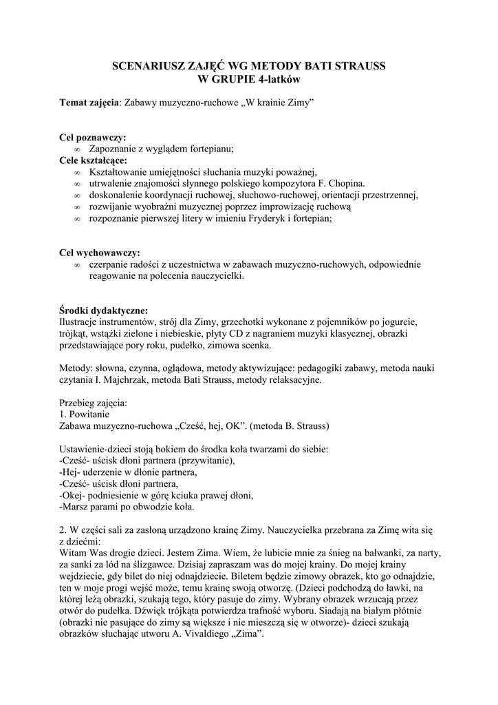SCENARIUSZ ZAJĘĆ WG METODY BATI STRAUSS W GRUPIE 4