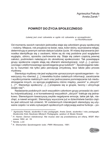 POWRÓT DO ¯YCIA SPO£ECZNEGO