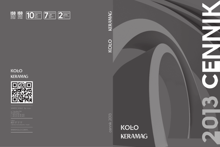 cennik 2013 Cennik obowiązuje od 01.02.2013 r. Oddajemy w Państwa ręce nowy cennik, w którym prezentujemy produkty marek Koło i Keramag. Wierzymy, że ten zintegrowany materiał prezentujący ofertę firmy Sanitec w Polsce, będzie dla Państwa istotnym wsparciem w codziennej pracy. marka KOŁO jest obecna na polskim rynku od ponad 50 lat. W naszej pracy każdego dnia korzystamy z know-how międzynarodowej Grupy Sanitec i skandynawskiej filozofii zarządzania. Dzisiaj możemy poszczycić się bogatą ofertą produktów wytworzonych zgodnie z wysokimi standardami produkcji. Keramag to jeden z wiodących niemieckich producentów wyposażenia łazienek należących do tej samej Grupy Sanitec. To marka z ponad 100-letnią tradycją. Dzięki najwyższym standardom technologicznym łączy w swoich produktach nowoczesne wzornictwo i funkcjonalność z najwyższą jakością oraz trwałością. SPIS TREŚCI – OFERTA KOŁO Ceramika Reflex Koło – Zestawienie produktów Quattro Ovum by A. Citterio Ego by A. Citterio Cocktail Varius Style Twins NOWOŚĆ Modo Nova Top Nova Top Pico Nova Top Bez Barier Nova Top Junior Primo Nova Rekord Idol Solo Pojedyncze modele i akcesoria NOWOŚĆ Meble Domino Premium Meble Domino XL Meble Domino Stelaże podtynkowe 6 10 15 21 29 30 35 39 44 45 49 51 53 54 62 67 78 81 83 85 90 94 102 Oferta inwestycyjna Umywalki Cocktail Umywalki stawiane na blat Zlewy ceramiczne NOWOŚĆ Umywalki wpuszczane w blat Umywalki podblatowe Pisuary Łazienka ekologiczna NOWOŚĆ Produkty stalowe Łazienka Bez Barier/Oferta uzupełniająca – Ceramika i akcesoria Łazienka Bez Barier/Oferta uzupełniająca – Produkty Lehnen 114 115 116 117 118 119 123 125 127 131 Kabiny i brodziki Reflex Koło i GlasPlus – Zestawienie produktów Kompletowanie kabin i brodzików S 600 Niven Next Akcent Plus Atol Plus Akord Geo 6 Fresh So First Parawany nawannowe Brodziki akrylowe Brodziki ceramiczne Akcesoria do brodzików 140 143 144 149 154 163 164 168 176 184 185 191 193 199 200 Wanny Wanny owalne Wanny narożne Wanny asymetryczne Wanny prostokątne Panele do wanien i akcesoria do wanien 204 206 207 212 218 Części zamienne i ekspozytory Części zamienne do ceramiki Części zamienne do kabin Ekspozytory Lista produktów KOŁO 224 227 267 271 SPIS TREŚCI – OFERTA KERAMAG 4 | 278 CERAMIKA I MEBLE ŁAZIENKOWE Seria Quattro Ovum by Citterio Ego by Citterio Varius Style Nova Top Nova Top Pico Nova Top Bez Barier Nova Top Junior Primo Nova Rekord Idol Solo Stalowe Cero Sign Sign Art 6 | Dopływ z tyłu 90-99 cm 60-70 cm 55-59 cm 50-54 cm 45-49 cm 35-44 cm Półpostumenty Postumenty Umywalki z 2 otworami Zlewy Po lewej Umywalki z otworem 110-119 cm Po prawej 40-55 cm 40-55 cm 35-39 cm Umywalki dla niepełnosprawnych Umywalki narożne Umywalki bez otworu Antybakteryjna Dla niepełnosprawnych Pisuary Bidetowa Wolnoopadająca Standardowa Bezwodny Miski stojące Odpływ pionowy Odpływ pionowy Dopływ z góry Odpływ poziomy Miska z półką 50-55 cm Lewa Odpływ poziomy Umywalki Umywalki Umywalki stawiane wpuszczane podblatowe w blat na blat 35-49 cm 55-60 cm 50-54 cm 40-49 cm 60-70 cm 55-59 cm 45-54 cm 70-79 cm 60-69 cm Umywalki asymetryczne Dla dzieci Odpływ pionowy Miska lejowa Odpływ poziomy Bidety Odpływ uniwersalny Odpływ pionowy Odpływ poziomy 45-59 cm 70-85 cm Umywalki Stojący Miski wiszące 55-69 cm 70-85 cm 55-69 cm 40-54 cm Prawa Wiszący Dla niepełnosprawnych Wc kompakty 110-120 cm 90-100 cm 80-89 cm 70-79 cm 65-69 cm 60-64 cm 55-59 cm 50-54 cm Seria Miska lejowa Dla niepełnosprawnych Odpływ uniwersalny Odpływ pionowy Odpływ poziomy z półką Odpływ poziomy 40-49 cm ZESTAWIENIE CERAMIKI Umywalki Quattro Ovum by Citterio Cocktail Ego by Citterio Varius Style Modo Twins Nova Top Primo Nova Rekord Solo Idol Verone Scarlet Caprice Punto Stalowe Sinda Swing Boston Madison Miski, bidety, pisuary, deski Deski POWŁOKA krople na powierzchni standardowej / krople na powierzchni Reflex / / pozornie gładka Powierzchnie występujące w standardowej ceramice łazienkowej wydają się idealnie gładkie. Niestety to tylko pozory, o czym świadczą trudne do usunięcia zabrudzenia, z którymi przychodzi nam walczyć podczas czyszczenia łazienki. Przyczyną gromadzenia się zanieczyszczeń są porowate zagłębienia, pokry wające pozornie gładką powierzchnię. To w nich właśnie osadzają się pozostałości mydła i kamień oraz gromadzą bakterie. / powłoka idealna Reflex KOŁO to specjalna powłoka, dzięki której powierzchnie ceramiczne stają się idealnie gładkie, a tym samym znacznie ograniczają osadzanie się zanieczyszczeń lub osadów mineralnych. Cechą charakterystyczną takich powierzchni jest łatwe łączenie się drobnych kropli wody w większe, co z kolei powoduje ich szybsze spływanie wraz z wszelkimi zabrudzeniami. | 7 WYKAZ CERAMIKI Z POWŁOKĄ REFLEX KOŁO UWAGA: Zamawiając produkty ceramiczne z powłoką Reflex Koło, prosimy podawać po kodzie z cennika numer koloru 900 Wszystkie produkty ceramiczne z powłoką Reflex są pakowane w kartony. Dopłata za powłokę Reflex Koło do produktów ceramicznych wynosi: 99 PLN/szt. netto (122 PLN/szt. brutto) Seria Produkt Model Nr EAN Cena z Reflex Koło netto Cena z Reflex Koło brutto QUATTRO Ceramika Quattro jest dostępna tylko z powłoką Reflex KOŁO – powłoka Reflex KOŁO w cenie produktu. OVUM by Citterio Umywalka 48 x 34 Umywalka 60 x 48 Umywalka 60 x 40, stawiana na blat Umywalka 70 x 55 Umywalka 80 x 50, prostokątna Umywalka 110 x 50, prostokątna Miska wisząca Bidet wiszący L42148 L41160 L41660 L41170 L41180 L41110 L43100 L45100 5906976340469 5906976453329 5906976455347 5906976465247 5906976467678 5906976469061 5906976480240 5906976480394 521 685 952 841 1224 1742 1217 1068 641 843 1171 1034 1506 2143 1497 1314 EGO by Citterio Umywalka 40 x 29 Umywalka ø 45, stawiana na blat Umywalka 60 x 54,4 Umywalka 65 x 54,4 Umywalka 80 x 54,4, asymetryczna prawa Umywalka 80 x 54,4, asymetryczna lewa Um