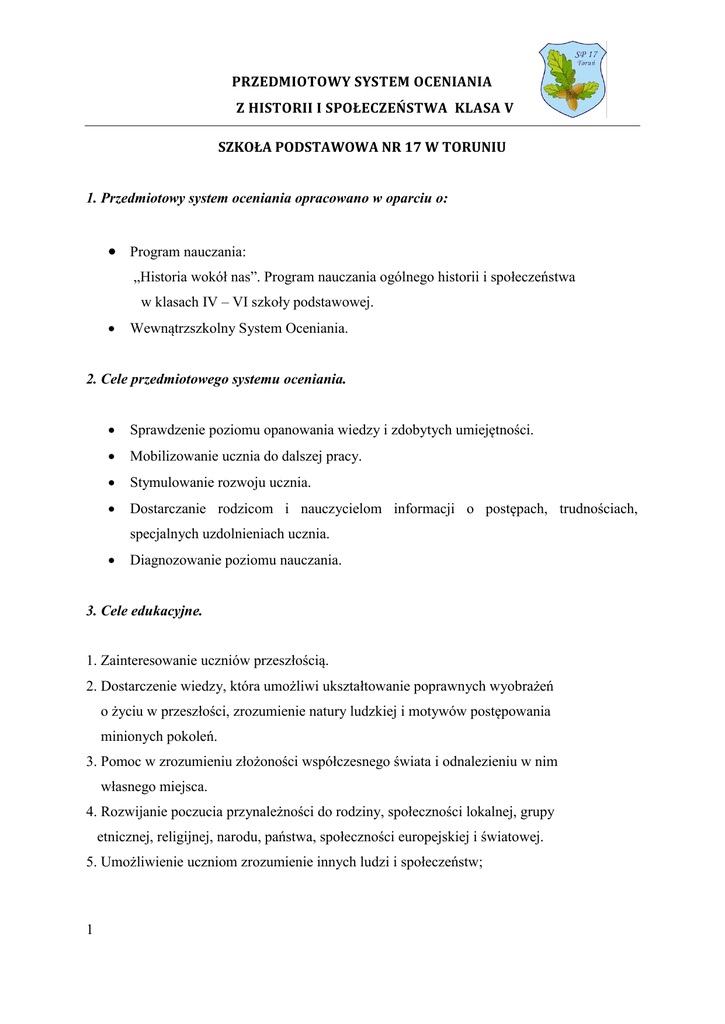 1 PRZEDMIOTOWY SYSTEM OCENIANIA Z HISTORII I