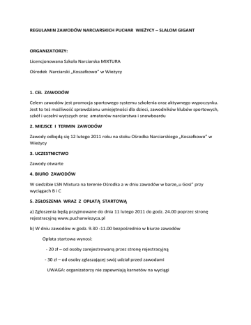 REGULAMIN ZAWODÓW NARCIARSKICH PUCHAR WIEŻYCY