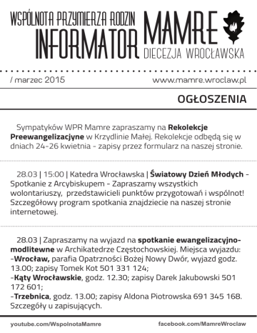 marzec 2015 - WPR Mamre - Archidiecezja wrocławska