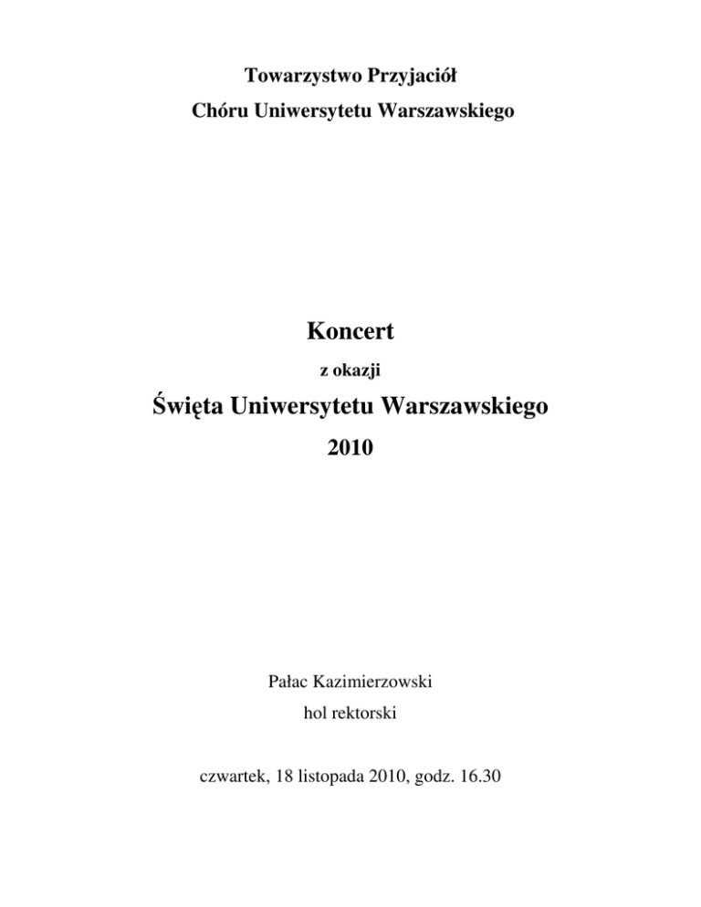 Program - Amici Canentes Towarzystwo Przyjaciół Chóru UW
