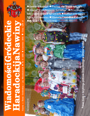 Pokaz mody z recyklingu podczas Dnia Ekologii w Gminie Gródek Fot. archiwum UG Gazeta o Ziemi Gródeckiej i jej Mieszkańcach l Nr 6 (238) l Czerwiec 2016 l Cena 4,00 zł Wiadomości Gródeckie Haradockija Nawiny lDzień Ekologii lPociąg do Walił tak, ale... lAkcja “Upiększanie Gródka” lPrzedszkolaki o poważnych sprawach lHaftowana pasja Miry Antonowicz lHistoria Ośrodka Zdrowia lBracia Owerczukowie 2 Katarzyna Samojlik, kat. od 19 lat - I miejsce Natalia Karłów, kat. 14-18 lat - I miejsce Gabriela Ciuńczyk, 14-18 lat - wyróżnienie Krzysztof Kochanowicz, kat. 7-13 lat - I miejsce Michał Martyniuk, kat. 7-13 lat - wyróżnienie Mateusz Samojlik, kat. od 19 lat KONKURS FOTOGRAFICZNY „PRZYRODA W GMINIE GRÓDEK” Wiadomości Gródeckie – Haradockija Nawiny CZERWIEC 2016 3 Od Redaktor Naczelnej Z Argentyny do Gródka W połowie maja wstąpił do domu kultury. Po angielsku zapytał o przedwojenny adres –Gródek, ulica Piłsudskiego nr… (dziś ul. Chodkiewicza). Gdzie to jest? I pokazał dowód zameldowania swego dziadka. Ruwin Goszczyński ur. 1913 r. w Gródku, rzemieślnik. Ruwin? Ten sam, który pod koniec lat 90. przyjeżdżał z Argentyny do Gródka? Taki niewysoki, w jasnych spodenkach do kolan ? I spacerował gródeckimi uliczkami. Tak, ten sam – uśmiecha się ciemnowłosy chłopak. Dziadek zmarł w 2009 r. Teraz z Argentyny do Gródka przyjechał on – Adrian, wnuk Ruwina. I chce zobaczyć dom, miejsce, w którym urodził się dziadek. To niesamowite. Ludziom czasem nie chce się jechać z jednego województwa do drugiego, żeby odwiedzić rodzinne strony dziadków. O tym spotkaniu pisze w swoim artykule pani Halina Matejczuk. Przypomniał mi się Ruwin. Rozmawiałam z nim, pisałam o nim reportaż. Przyjechał po to, żeby znaleźć, zobaczyć miejsce, w którym stał domek rodziców. W 1934 r. wyjechał do Argentyny tak jak jego dwóch braci. Jeden pozostał w Gródku, razem z rodziną zginął w czasie wojny. Rodzice umarli (ojciec był pisarzem w fabryce Rappelskich) jeszcze przed wojną. Gródek był już dla niego trochę obcym miejscem – nie miał tu rodziny, znajomych, dawnego domu, nie wiadomo nawet, gdzie są groby jego rodziców, brata, siostry, nie było już śladów po dawnych fabrykach, synagogach, drogach, zalanych asfaltem. A jednak rok po roku, trzykrotnie wracał do Gródka aż z Argentyny. Okazuje się, że wielu gródczan go pamięta. Wyglądał charakterystycznie. Niewysoki, zgarbiony staruszek, w tych swoich spodenkach bez względu na pogodę, z nieodłącznym plecaczkiem, energicznie maszerujący po Gródku. Ten przedwojenny żydowski świat przypomnieli uczniowie naszego gimnazjum. W ramach warsztatów „Forum Dialogu” z pomocą swoich nauczycieli opracowali wycieczkę śladami Żydów z Gródka. Pierwsza – próbna – już się odbyła. Opowiada o niej w swoim tekście pani Irena Matysiuk. Czerwiec to taki miesiąc dzieci, z racji ich święta. To głównie z myślą o dzieciach zorganizowany został piknik ekologiczny nad Zalewem w Zarzeczanach. Bogactwo strojów recyklingowych przygotowanych przez dzieci przy wydatnej pomocy mam przeszło nasze największe wyobrażenia. Ten najbardziej kolorowy i twórczy moment został przedstawiony na okładce i w relacji oraz fotorelacji z tego ciekawego wydarzenia. Niezapomniana chwila, kiedy dzieciaki wy- chodziły na scenę ubrane w stroje wykonane z worków foliowych, zakrętek, kartonów, butelek plastikowych…Wcale się nie dziwię, że podczas mojego spotkania z przedszkolakami, na pytanie, o czym marzą, kilka dziewczynek odpowiedziało, że chcą być motylami. Przypominam, że ogłosiliśmy konkurs dziennikarski „Zwyczajne (niezwyczajne) historie Gródeckich Ludzi”, który trwa do 15 czerwca. Drodzy czytelnicy – młodsi i starsi, opowiedzcie historię z życia swoich bliskich, sąsiadów, znajomych. Jest dobra okazja i pretekst, żeby w końcu porozmawiać o życiu ludzi, których historię warto ocalić od zapomnienia. Najlepsze prace zostaną nagrodzone. Szczegółów szukajcie na dalszych stronach gazety. PS. Zapraszamy do współpracy. Podrzucajcie tematy, nadsyłajcie swoje zdjęcia, artykuły, listy do 20 czerwca na adres [email protected] Dorota Sulżyk▲ Sprawy samorządowe Relacja z XVIII Sesji Rady Gminy Gródek 27 kwietnia 2016 r. Po ustaleniu porządku obrad XVIII Sesji (do którego na wniosek Wójta Wiesława Kuleszy, Radni wprowadzili jeszcze trzy projekty uchwał), Przewodniczący Rady Wieczysław Gościk przypomniał o konkursie Wójt Roku 2015, w którym uczestniczył Wiesław Kulesza – Wójt Gminy Gródek. Pogratulował w imieniu Rady Gminy zakwalifikowania się do 10 finalistów plebiscytu i wraz z Zastępcą Przewodniczącego Aliną Gościk wręczył Wójtowi wiązankę kwiatów. Wójt Gminy podziękował Radnym Rady Gminy oraz wszystkim, którzy przyczynili się do osiągnięcia tak dużego sukcesu. Następnie przedstawił informację o swojej pracy w okresie międzysesyjnym (skrót przedstawiamy w tym numerze). W kolejnym punkcie Radni zajęli się rozpatrzeniem uchwał (projekty otrzymali wraz z zaproszeniem na Sesję, były one również omawiane na posiedzeniu wspólnym komisji stałych Rady Gminy Gródek 25 kwietnia 2016 r.) w sprawach: - przyjęcia Programu Rozwoju Gminy Gródek na lata 2015-2020 - Pan Norbert Brzostowski z firmy Project Consulting, au- tor Programu Rozwoju Gminy Gródek na lata 2015-2020, przedstawił prezentację multimedialną, w której omówił główne założenia Programu, metodologię jego tworzenia, kierunki rozwoju Gminy, główne cele i działania zaplanowane do realizacji. - nawiązania partnerskiej współpracy pomiędzy Gminą Gródek a Grodzieńskim Rejonowym Komitetem Wykonawczym Pan Wiesław Kulesza Wójt Gminy wyjaśnił, że uchwała jest niezbędna do podpisania umowy partnerskiej, która pozwoli na wspólne ubieganie się o środki finansowe z Programu Współpracy Transgranicznej Polska-Białoruś-Ukr