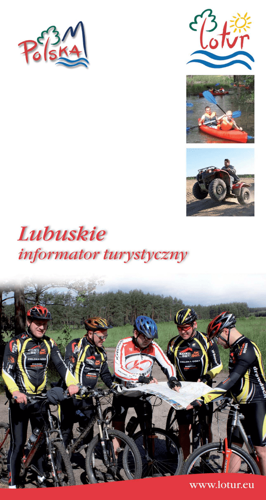 SPIS TREŚCI Województwo lubuskie – podział administracyjny ............................ 3 Miasto Gorzów Wielkopolski …………………………….......... Miasto Zielona Góra ………………………………………........ Warto zobaczyć …………………………………………........... Ochrona przyrody ……………………………………….......…. Parki narodowe …………………………………….......… Parki krajobrazowe ……………………………...........…. Rezerwaty przyrody …………………………........……… Pomniki przyrody …………………………….......………. Inne …………………………………………….......……… Placówki kulturalne …………………………………........…….. Muzea i skanseny …………………………........………... Teatry ………………………………………........………… Kina ……………………………………….........………….. Inne ………………………………………….........……….. Baza noclegowa ………………………………….........……….. Gospodarstwa agroturystyczne …………………........………. Rekreacja ………………………………………........………….. Jazda konna ……………………………........…………… Wypoczynek nad wodą …………………........…………. Szlaki turystyczne …………………….........…………….. Szlaki piesze …………………………........……………… Szlaki rowerowe ………………………........…………….. Szlaki konne …………………………………........……… Szlaki kajakowe …………………………….......………... Informacje turystyczne i usługi przewodnickie …….......……. Instytucje związane z turystyką …………………….......…….. Transport i komunikacja …………………………........……….. Lotniczy ……………………………………………………. Kolejowy …………………………………………….……... Autobusowy ……………………………………….………. Miejski ……………………………………………………... Taksówki ………………………………………….……….. Wypożyczalnie samochodów ………………........……… Ważne adresy ……………………………………........………... 5 11 20 45 45 46 51 59 72 82 82 86 86 88 93 108 118 118 121 128 136 145 155 157 160 164 167 167 168 170 175 176 179 179 1. 2. 3. 4. 5. 6. 7. 8. 9. 10. 11. 12. 1 Województwo lubuskie – podział administracyjny TURYSTYCZNY RAJ W LUBUSKIM Województwo Lubuskie, dzięki swym walorom przyrodniczym, historycznym i gospodarczym, jest jednym z najatrakcyjniejszych obszarów zachodniej Polski. Swym zasięgiem obejmuje tereny nad Nysą Łużycką, Obrą, dolna Wartą i środkową Odrą, od zachodu graniczy z niemieckimi landami: Brandenburgią i Saksonią, a po stronie polskiej z Wielkopolską, Dolnym Śląskiem i Zachodnim Pomorzem. Województwo ma dwa główne miasta, Zieloną Górę z siedzibą władz samorządowych (Sejmik i Urząd Marszałkowski) oraz Gorzów Wielkopolski, ze stolicą administracyjną Lubuskiego, gdzie swoją siedzibę ma wojewoda. Połowę obszaru regionu zajmują kompleksy leśne leżące na delikatnych pagórkach, bogate w runo leśne. Największymi skupiskami leśnymi są puszcze: Notecka, Gorzowska, Drawska, Lubuska oraz bory: Zielonogórskie, Skwierzyńsko-Sulęcińskie i Dolnośląskie. Można tutaj w naturze zobaczyć daniela, żółwia błotnego, rybołowa, piżmaka czy orła bielika. Usytuowanych jest osiem parków krajobrazowych o niepowtarzalnej urodzie: Gryżyński, Łagowski, Krzesiński, Ujścia Warty, Pszczewski, Barlinecko-Gorzowski, Przemęcki i Łuk Mużakowa oraz 48 rezerwatów przyrody, wśród nich dwa posiadające rangę europejską. Do największych akwenów należą jeziora: Sławskie (826 ha), Osiek (539 ha), Niesłysz (486 ha) oraz Zbąszyńskie, Myśliborskie, Lubikowskie, natomiast najgłębszym jest Jez. Trześniowskie (58,8 m gł.). Uzupełnieniem sieci wodnej są rzeki: Warta, Noteć, Nysa Łużycka, Bóbr oraz Odra, która klamrą spina Ziemię Lubuską. Ponadto wiele mniejszych jezior przy których wypoczynek to czysta przyjemność. W Lubuskim znajduje się część Drawieńskiego Parku Narodowego i Park Narodowy „Ujście Warty”, który jest istnym rajem dla dzikiego ptactwa oraz jego zagorzałych miłośników. Prawdziwa Rzeczpospolita Ptasia. Żyje tu w otoczeniu dziewiczych rozlewisk i mokradeł prawie 240 gatunków ptaków, z czego ok. 160 to gatunki lęgowe, 34 gatunki ssaków i 390 gatunków roślin naczyniowych. Niezwykłą atrakcją dla turystów jest Park Krajobrazowy „Łuk Mużakowa”, ciekawy twór geologiczny w postaci ogromnej moreny czołowej o kształcie 40 kilometrowej podkowy. Ta unikatowa, największa tego typu forma na świecie, wpisana została na listę krajowego dziedzictwa UNESCO. Na uwagę zasługują również liczne kina, galerie, kluby, wystawy, teatry, filharmonia i muzea, które sprawiają że lubuskie jest bogate w wydarzenia kulturalne. Lubuskie współpracuje z partnerami zagranicznymi. Współpraca ta realizowana jest nie tylko na szczeblu regionalnym, ale również na szczeblu lokalnym, poprzez porozumienia bliźniacze miast, gmin i powia-tów oraz poprzez kontakty szkół, instytucji publicznych i prywatnych, organizacji, stowarzyszeń, itp. Ważną rolę w tym zakresie odgrywają Euroregiony: Pro Europa Viadrina oraz Sprewa-Nysa-Bóbr, szczególnie w ramach współpracy z Brandenburgią. To tylko namiastka atrakcji naszego regionu, które mogą Państwa spotkać. Do zobaczenia na Ziemi Lubuskiej. 2 Województwo lubuskie – podział administracyjny WOJEWÓDZTWO LUBUSKIE – PODZIAŁ ADMINISTRACYJNY POWIATY GRODZKIE Gorzów Wielkop