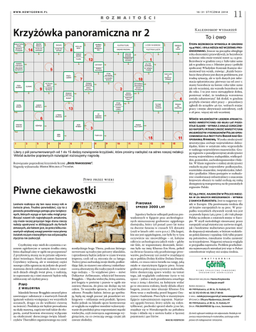 W W W.NOW YGORNIK.PL 16 –31 S T YC Z N I A 2 014 R O Z M A I T O Ś C I Krzyżówka panoramiczna nr 2 11 Kalejdoskop wydarzeń To i owo Stopa bezrobocia wyniosła w grudniu 13,4 proc. i była niższa niż wcześniej prognozowano. Jeszcze na początku ubiegłego roku ekonomiści przewidywali, że bezrobocie na koniec roku może wynieść nawet 14–15 proc. Bezrobocie w grudniu 2013 r. było takie samo jak w grudniu 2012 r. Minister pracy i polityki społecznej Władysław Kosiniak-Kamysz skomentował ten wynik, mówiąc: „Każde bezrobocie dwucyfrowe jest dużym problemem, jest trudną sytuacją, ale w tych danych jest informacja optymistyczna: pierwszy raz od 2007 r. mamy bezrobocie na koniec roku takie samo jak rok wcześniej, nie wzrosło bezrobocie rok do roku. I to jest rzecz niewątpliwie dobra, ponieważ widać, że tendencja wzrostowa została zahamowana”. Jak dodał, w grudniu przybyło również ofert pracy – pracodawcy zgłosili do urzędów 46 tys. wolnych miejsc pracy i miejsc aktywizacji zawodowej, czyli o 28 proc. więcej niż rok wcześniej. Wśród województw liderem atrakcyjności inwestycyjnej od kilku lat pozostaje śląskie – wynika z analiz corocznego raportu Atrakcyjność inwestycyjna województw i podregionów Polski opracowanego dla Instytutu Badań nad Gospodarką Rynkową. Wysoka atrakcyjność inwestycyjna cechuje województwo dolnośląskie, które w ostatnim roku wyprzedziło w rankingu województwo mazowieckie. Grupę regionów o ponadprzeciętnej atrakcyjności tworzą województwa: małopolskie, wielkopolskie, pomorskie, zachodniopomorskie i łódzkie. W klasie regionów o niskiej atrakcyjności znalazło się pięć województw: podkarpackie, warmińsko-mazurskie, świętokrzyskie, lubelskie i podlaskie. Mimo postępów w rozbudowie i modernizacji infrastruktury o znaczeniu krajowym obszary te nadal cechują się niską dostępnością transportową na tle pozostałych regionów Polski. Rozwiązanie poprzedniej krzyżówki brzmi: „Boże Narodzenie”. Nagrodę wylosowała: Maria Wolska z Tychów. Piwo przez wieki ARCHIWUM Piwne ciekawostki Leniwie rozkręca się ten nasz nowy rok w świecie piwa. Trudno powiedzieć, czy to z powodu prawdziwego potopu piw świątecznych, których wysyp w tym roku mógł przytłoczyć nawet ich największych amatorów, czy może raczej przyczyn tego stanu rzeczy należy upatrywać w zbliżających się feriach zimowych, ale faktem jest, że prócz kilku niewartych większej uwagi premier nasz piwny światek niczym niezwykłym nas od początku stycznia nie zaskoczył. Czyżbyśmy więc mieli do czynienia z sezonem ogórkowym w samym środku zimy, która skądinąd zimy w ogóle nie przypomina? Z przykrością muszę na to pytanie odpowiedzieć twierdząco. Niech mi zatem Szanowni Czytelnicy wybaczą, ale w niniejszej części naszego cyklu ograniczę się jedynie do przedstawienia dwóch ciekawostek, które w ostatnich dniach obiegły świat piwa, z nadzieją, że zapoznanie się z nimi stanowić będzie miłą odskocznię od ciężkiej pracy. P iwo z wieloryba Islandzki browar Brugghús uwarzył piwo zawierające substancje z martwych finwali (gatunek walenia występujący we wszystkich oceanach, drugie co do wielkości zwierzę na świecie). Produkcja nie będzie prowadzona na skalę masową, napój nie trafi także do eksportu, został bowiem stworzony wyłącznie na okoliczność dorocznego święta Islandczyków Thorrablot organizowanego na cześć nordyckiego boga Thora, podczas którego serwowane są tradycyjne potrawy islandzkie, i sprzedawany będzie jedynie w czasie trwania imprezy, czyli od 24 stycznia do 22 lutego. Twórcy piwa zachwalają swoje dzieło, podkreślając fakt, że stanowi ono zdrową i niskotłuszczową alternatywę dla tradycyjnych trunków tego rodzaju. – To wyjątkowe piwo – mówi Dabjartur Arilmusson, właściciel browaru Brugghús. – Mączka wieloryba, którą zawiera, jest bogata w proteiny i prawie w ogóle nie zawiera tłuszczu, do piwa nie dodaje się też cukru. To wszystko sprawia, że jest bardzo zdrowe. Ponadto ludzie, którzy go spróbują, będą się mogli poczuć jak prawdziwi wikingowie – reklamuje swój produkt. Sprawa budzi jednak na Islandii spore kontrowersje ze względu na wątpliwe moralnie wykorzystywanie do produkcji piwa wspomnianej mączki wieloryba, czyli zwierzęcia zagrożonego wyginięciem, na co zwracają uwagę czujni jak zawsze ekolodzy. P iwowar sprzed 3000 lat Japońscy badacze odkopali podczas prowadzonych w Egipcie prac archeologicznych nienaruszony grobowiec egipskiego dostojnika, który żył ponad 3000 lat temu na dworze faraona w czasach XX dynastii (czyli w latach 1186–1070 p.n.e.). Dla kogoś, kto nie jest egiptologiem, nie było by w tym oczywiście nic niezwykłego – ot, kolejne odkrycie archeologiczne jakich wiele – gdyby nie fakt, że wspomniany dostojnik, któremu było na imię Khonso Em Hem, pełnił na dworze faraona rolę przełożonego piwowarów, pochowany zaś został w znajdującej się w pobliżu Doliny Królów Dolinie Dostojników, co rzuca nieco światła na rangę, jaką miało w starożytnym Egipcie piwo. Ściany grobowca pokrywają oczywiście malowidła, które dostarczają sporo wiedzy na temat tego, jak wyglądało codzienne życie w tej epoce – jedno z nich przedstawia zmarłego wraz z żoną i dziećmi, na kolejnym widać go w otoczeniu rodziny, kiedy składa ofiary bogom, jeszcze inne ukazuje Khonso Em Hem wraz z małżonką przed bogami Ozyrysem i Anubisem. Piwo było w starożytnym Egipcie najważniejszym napojem. Najstarszy egipski browar, który udało się zidentyfikować, pochodzi sprzed około 3700 lat, znajduje się w Hierakonpolis na południu kraju i składa się z sześciu kadzi o łącznej pojemności 390 litrów. MACIEJ RZEPECKI Aż 75,2 proc. najemców w Polsce mieszka w za małych mieszkaniach – wynika z danych Eurostatu. Jest to najgorszy wynik w Europie. Dla porównania średnia 