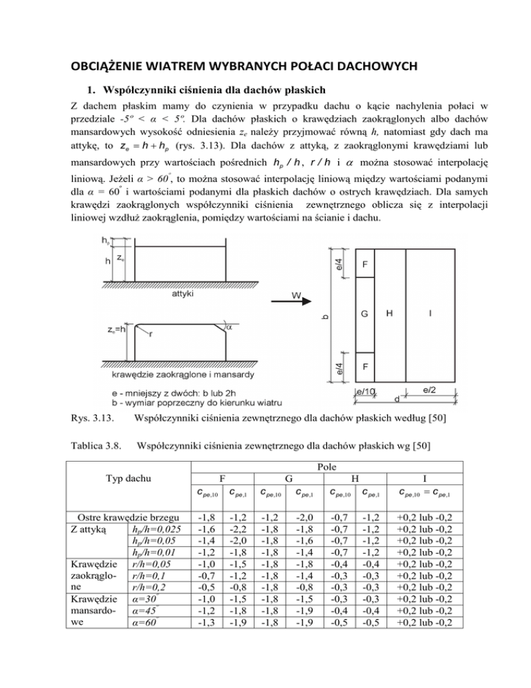 OBCIĄŻENIE WIATREM WYBRANYCH POŁACI DACHOWYCH